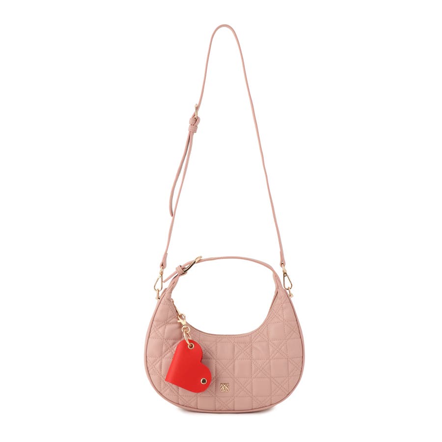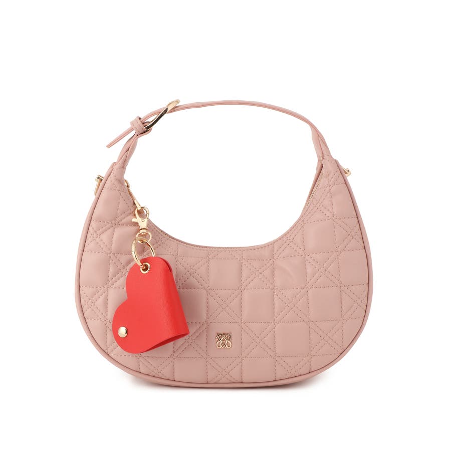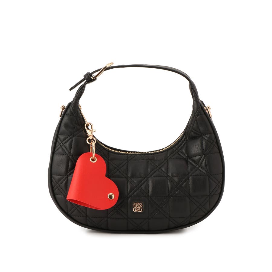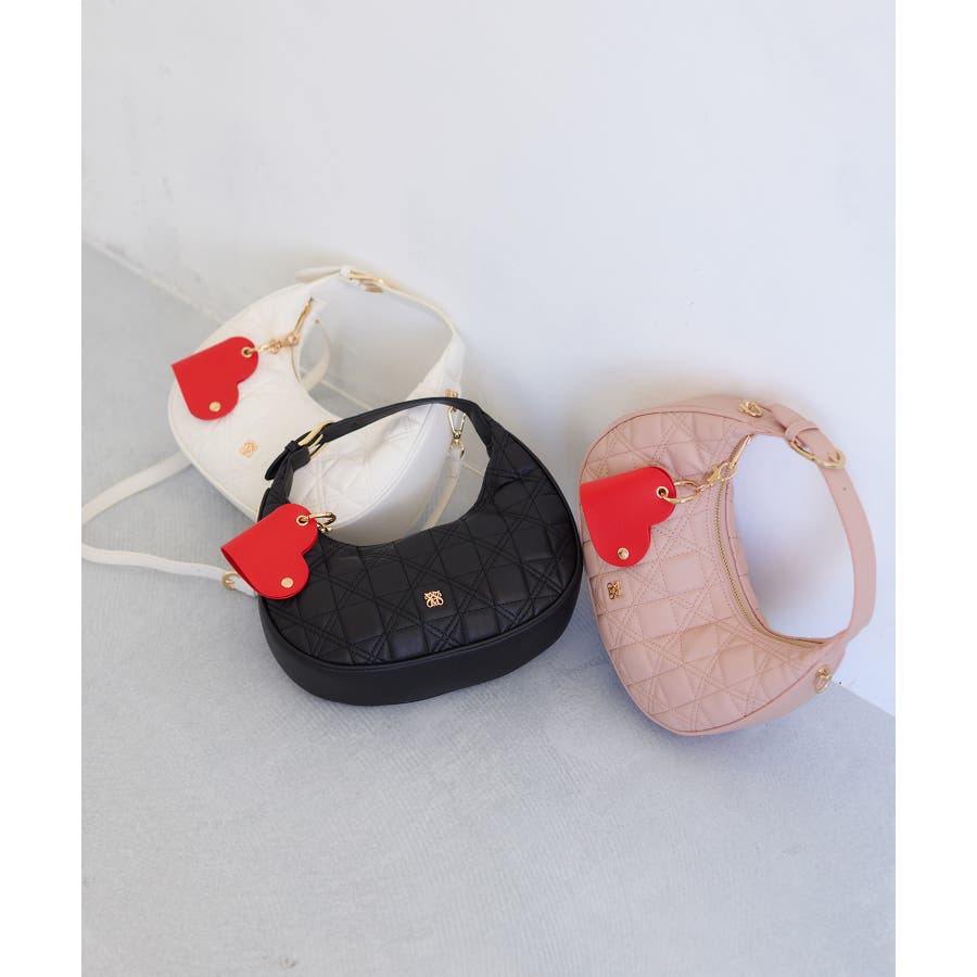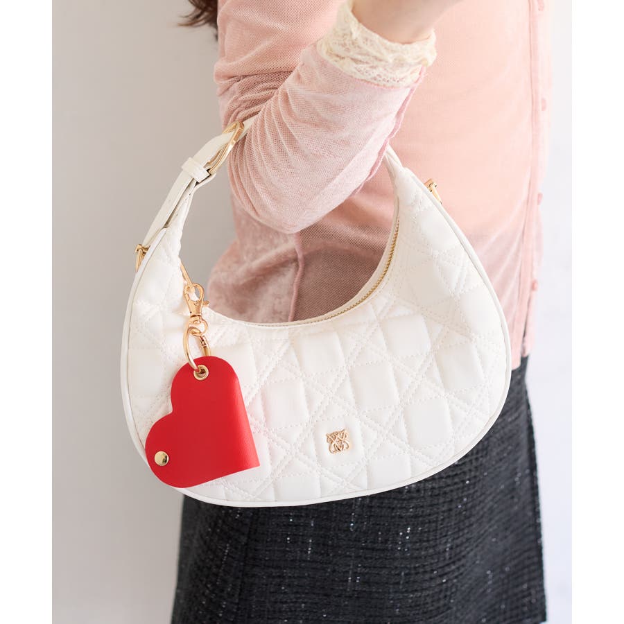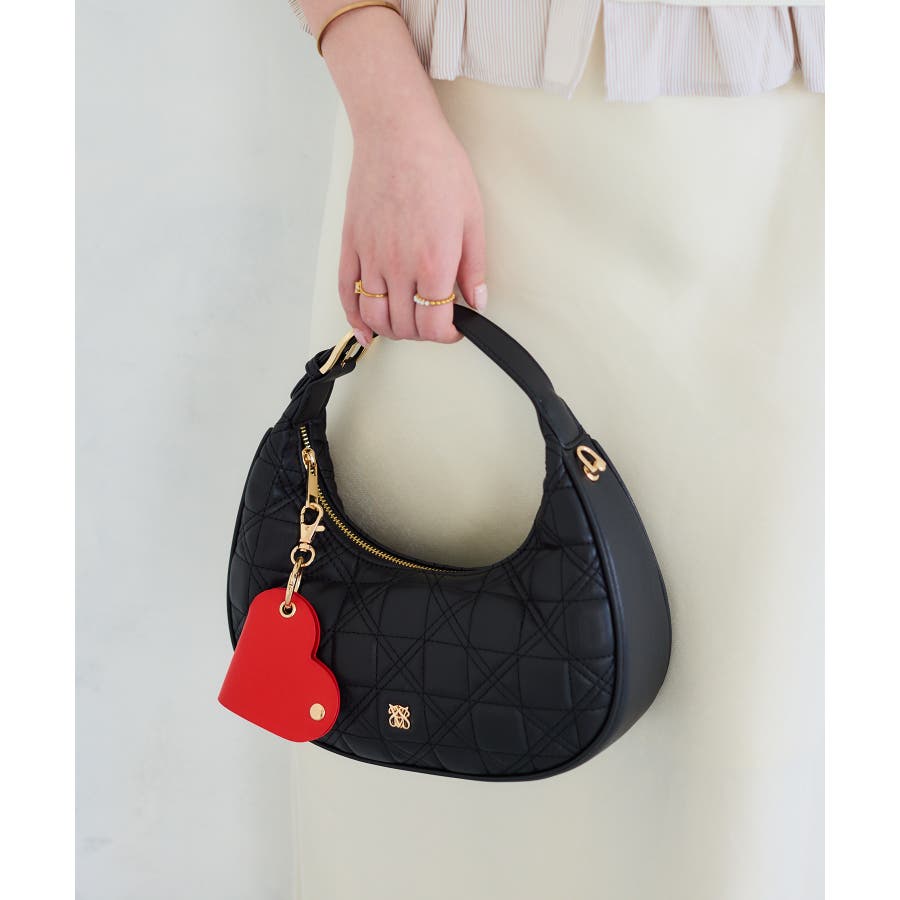 取り外し可能なハートチャーム付きで、バレンタインムードをさりげなく演出します。フロントにはゴールドのロゴパーツが施され、柔らかな表情を引き締めるアクセントに。