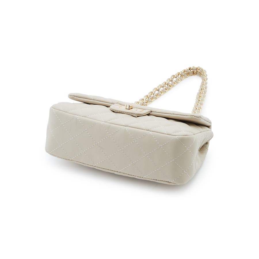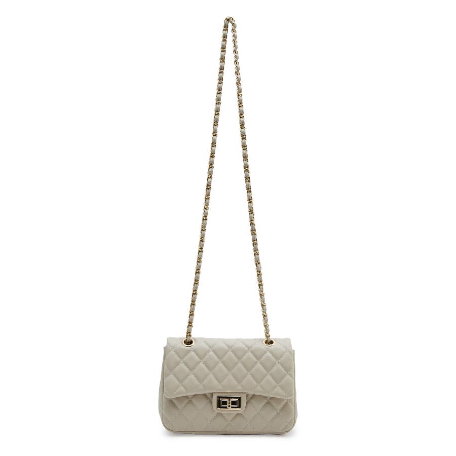 【デザイン・シルエット】 チェーンを二重にするとワンショルダー、伸ばすとクロスボディーで持っていただける2WAY仕様です。 後ろにポケットが付いているので、さっと取り出したいICカードなどを入れていただくのに便利です。 普段のカジュアルなスタイルから、少しかしこまったスタイル、結婚式などのオケージョンシーンにも合う上品で高級感のあるバッグです。 ※こちらは、昨年ご好評だった品番BVX31230と同型になります。 【素材】 リアルレザーのような質感の合成皮革。 【カラー】 定番で使い勝手の良いブラックと、秋冬スタイルのアクセントにぴったりなベージュ・グリーンの3色展開。 ----------------------------- ポケットの数:外×1、内×1 A4収納:不可能 長財布収納:可能 ショルダー紐:あり(長さ調節不可) ----------------------------- ※画像の商品はサンプルです。 実際の商品と仕様、加工、サイズが若干異なる場合がございます。