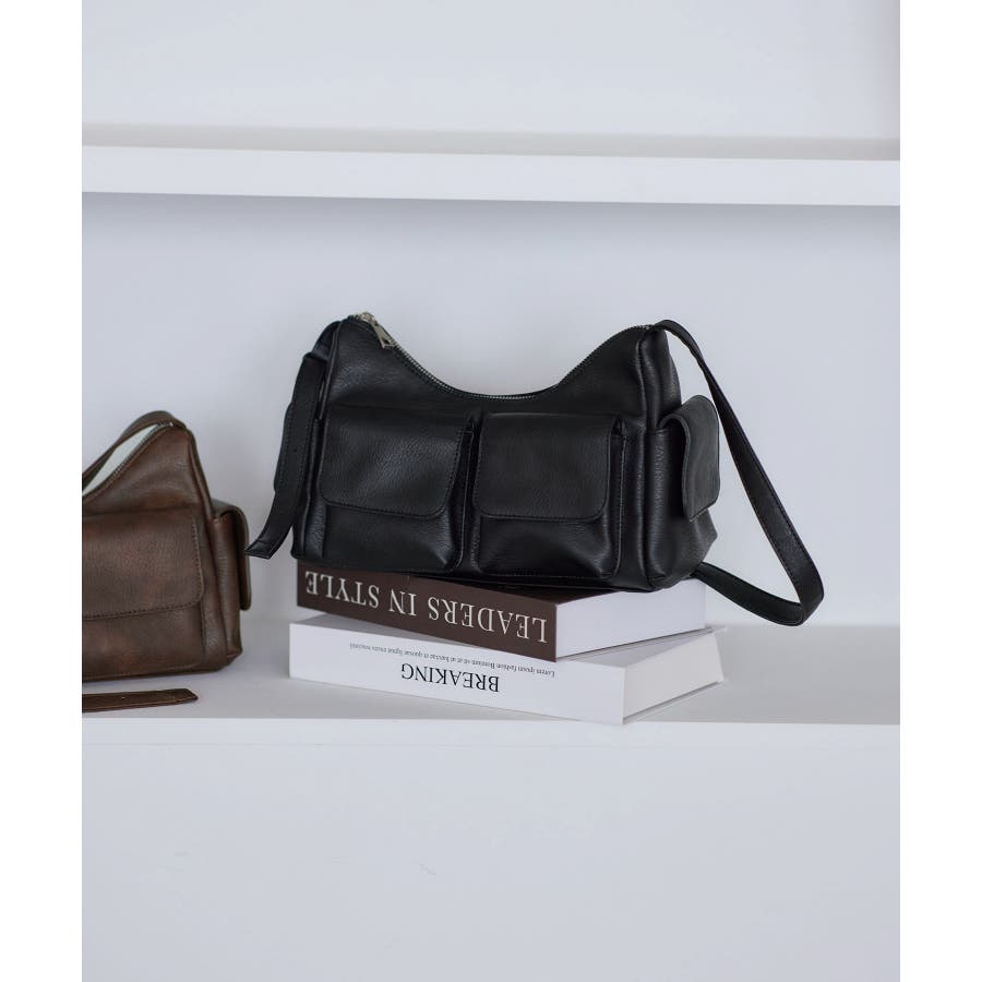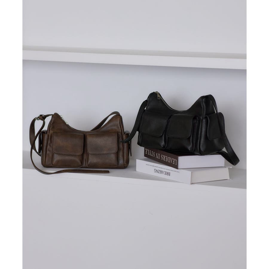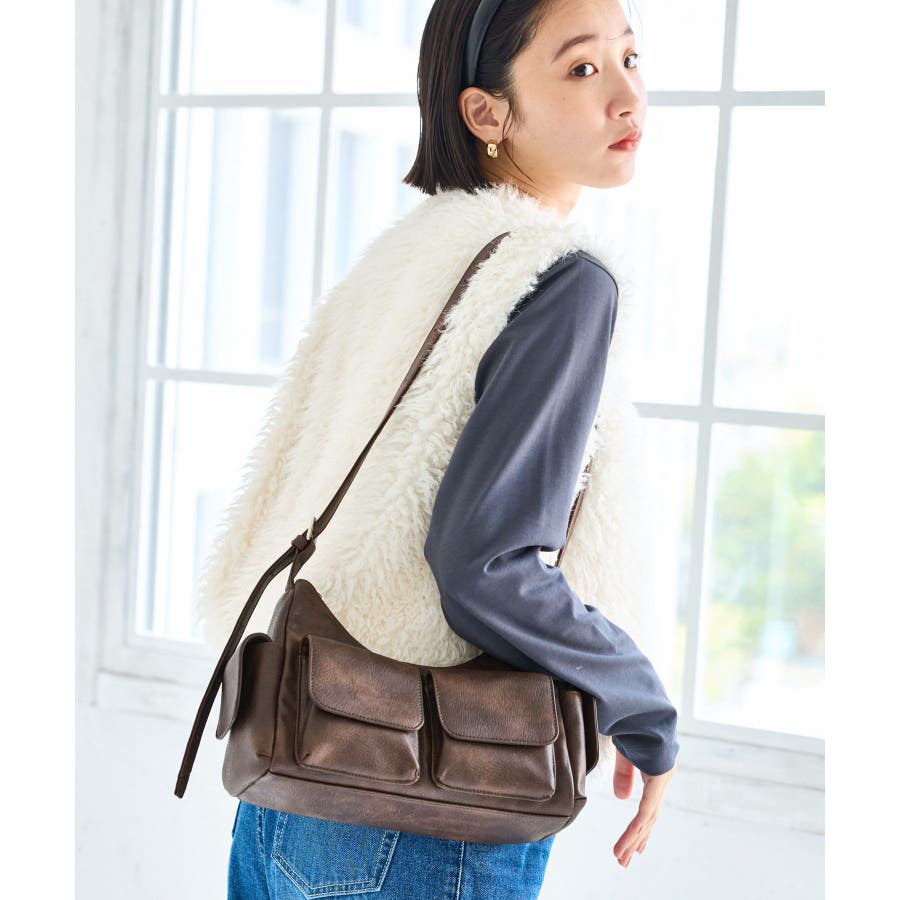 【2WAY】ビンテージ合皮クアトロポケットショルダーバッグ