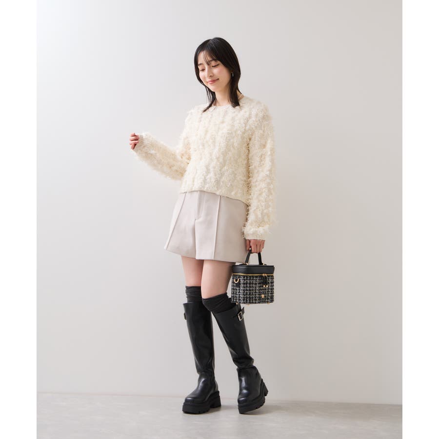 ツイード調はモノトーンスタイルのアクセントにも◎。