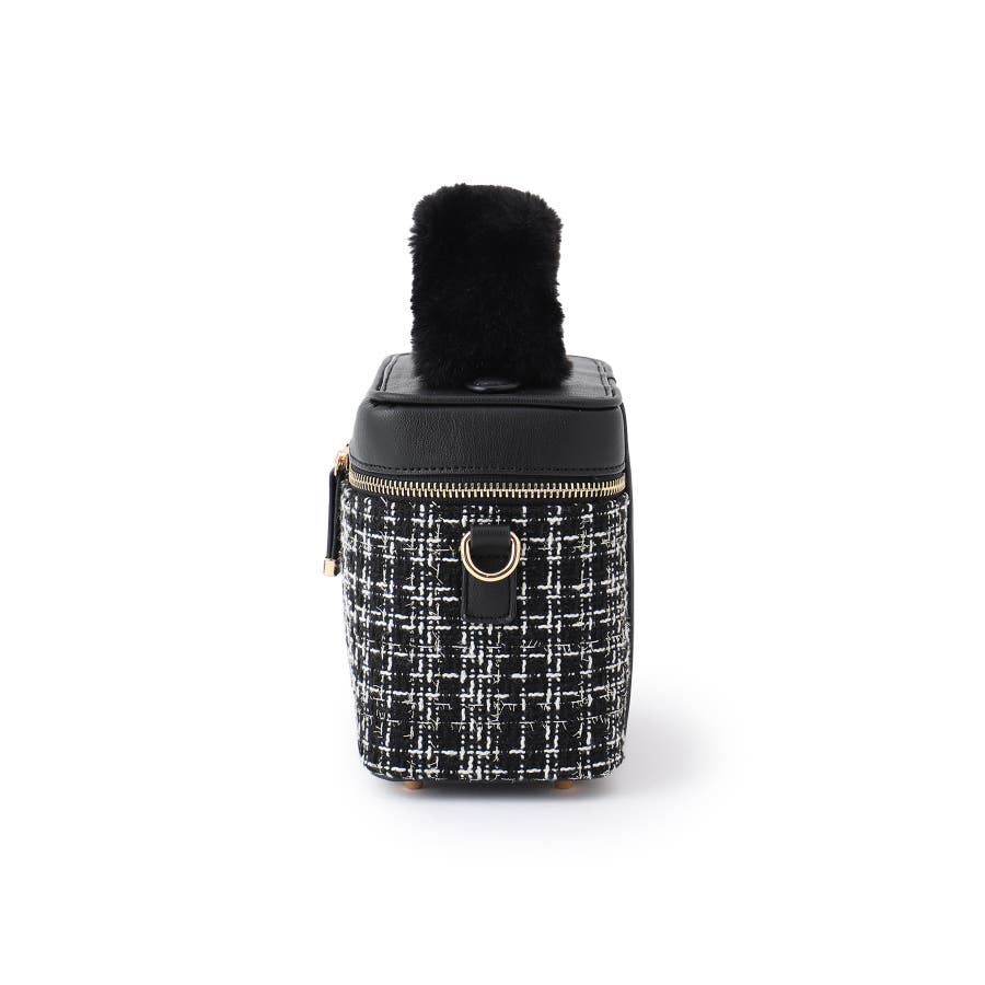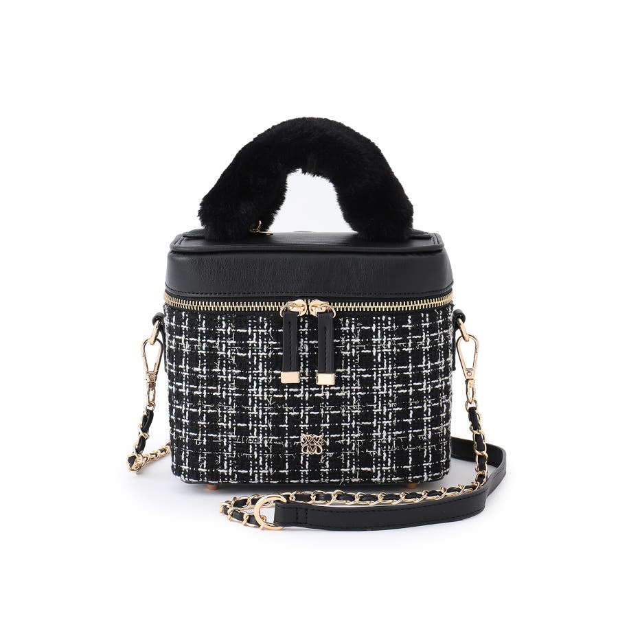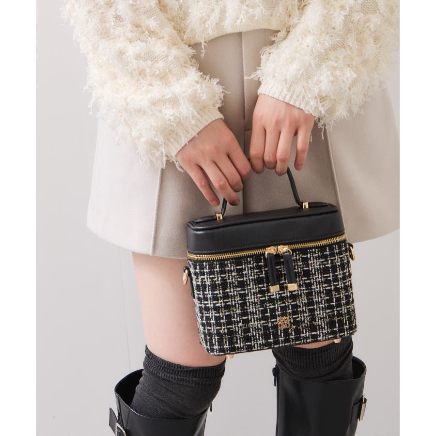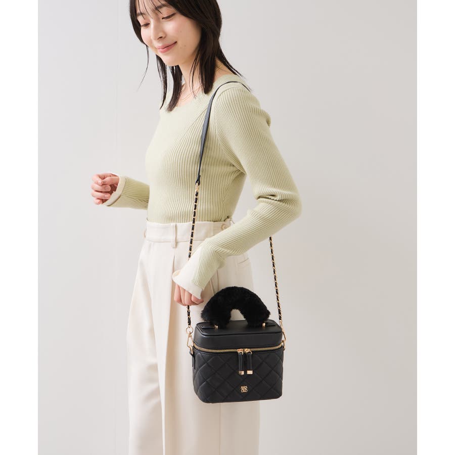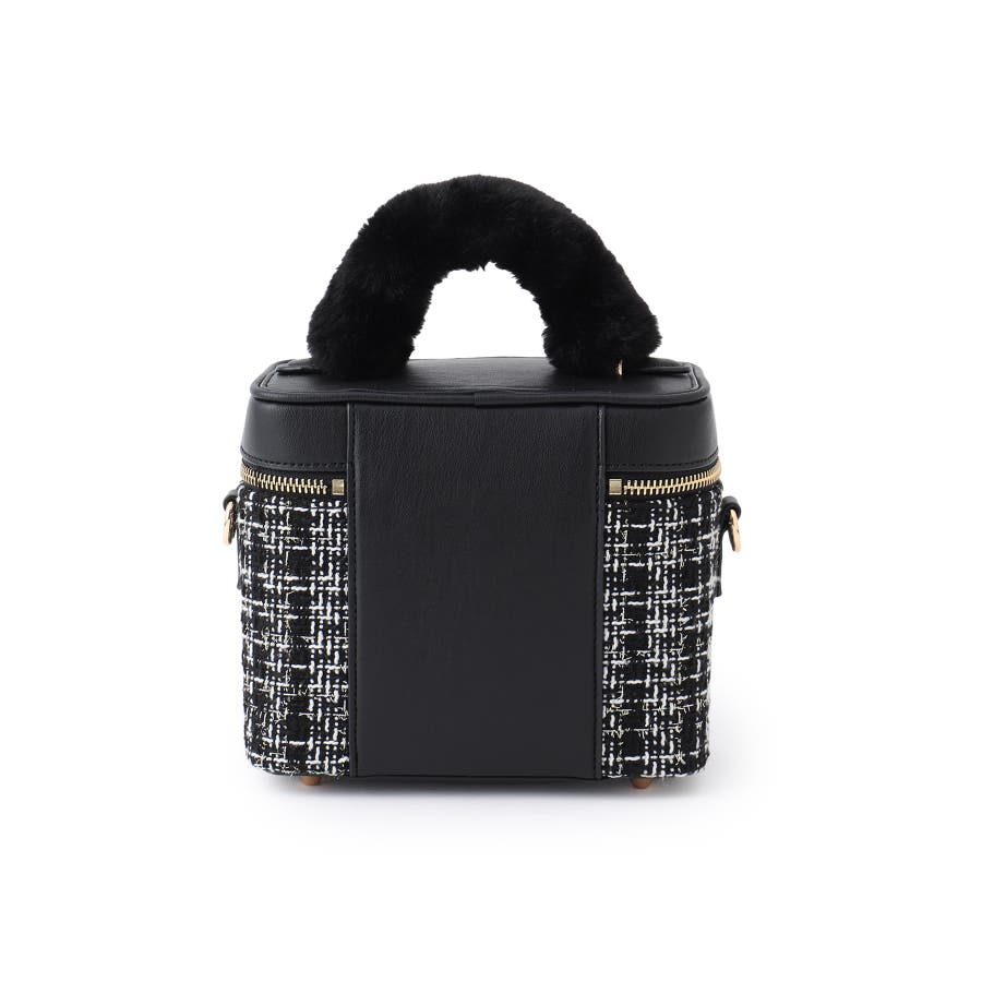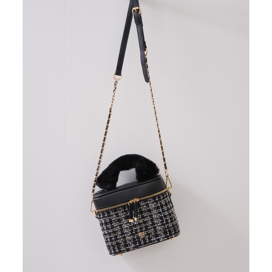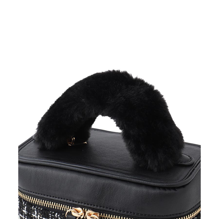 ファーハンドルキルティング&ツイードバニティバッグ/2WAY