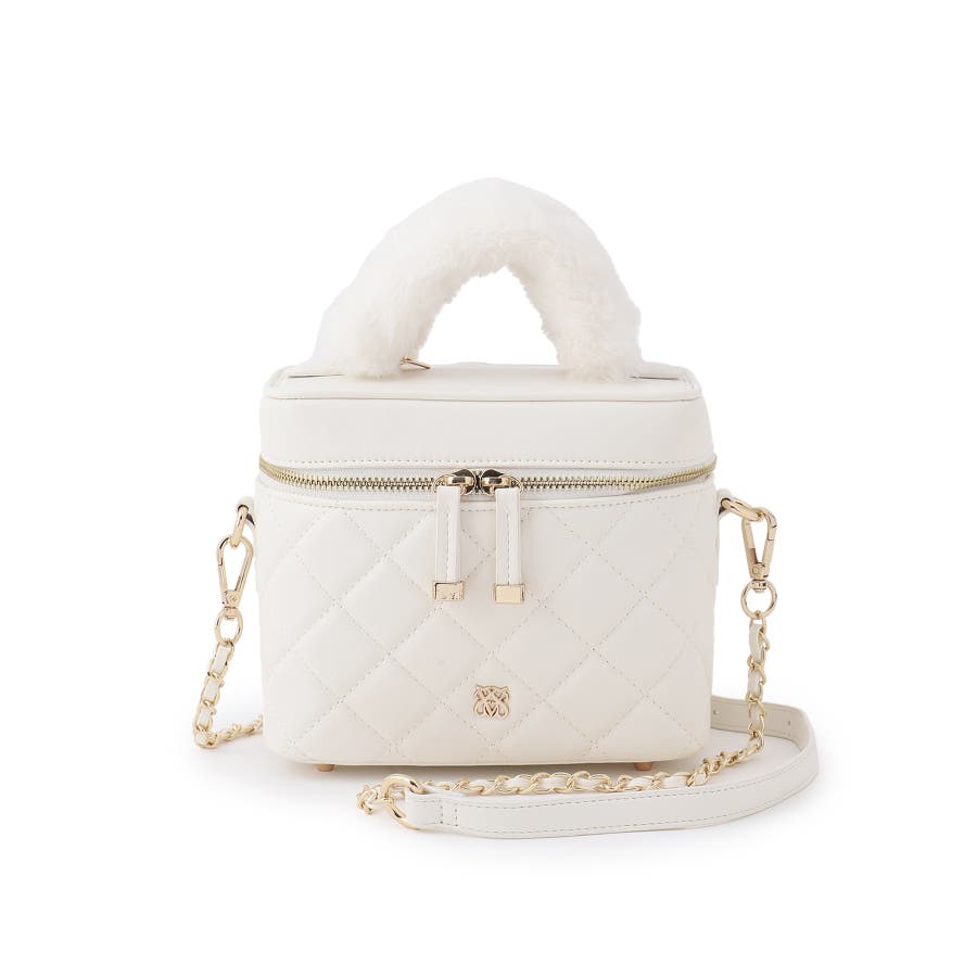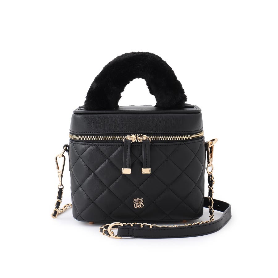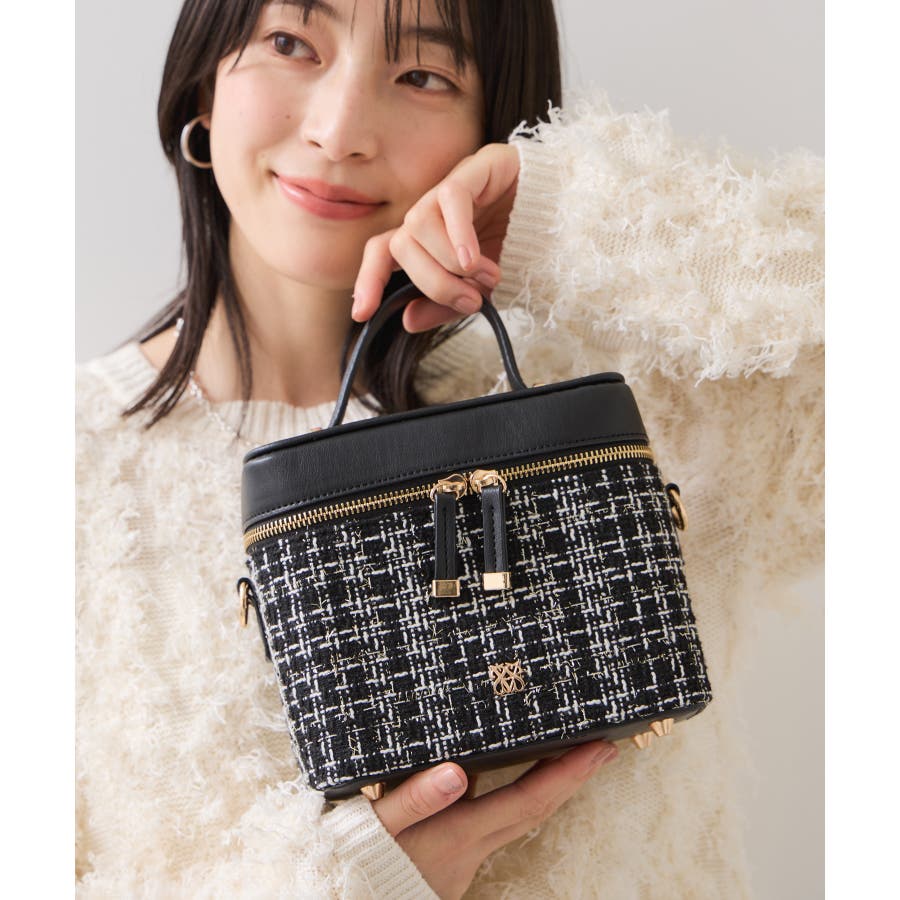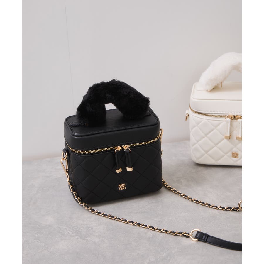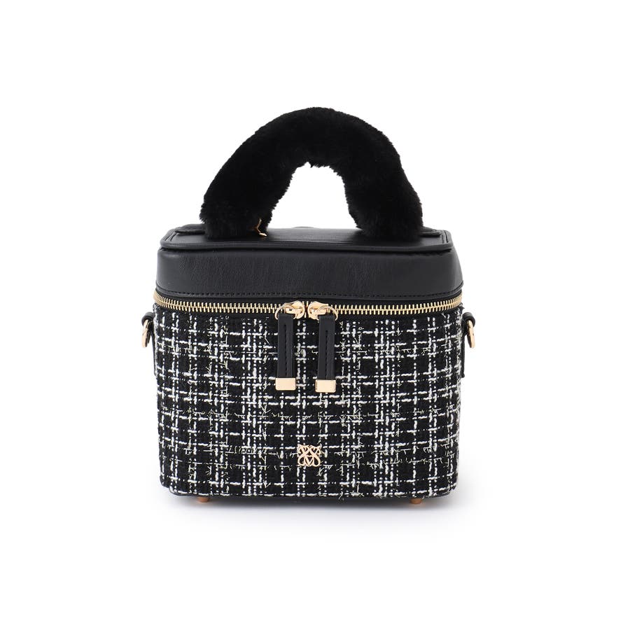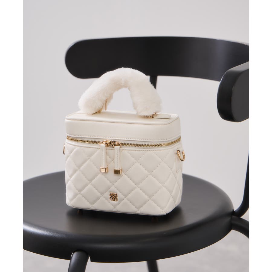 ファーハンドルキルティング&ツイードバニティバッグ/2WAY