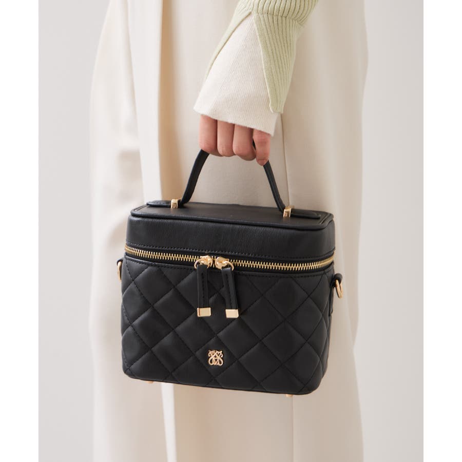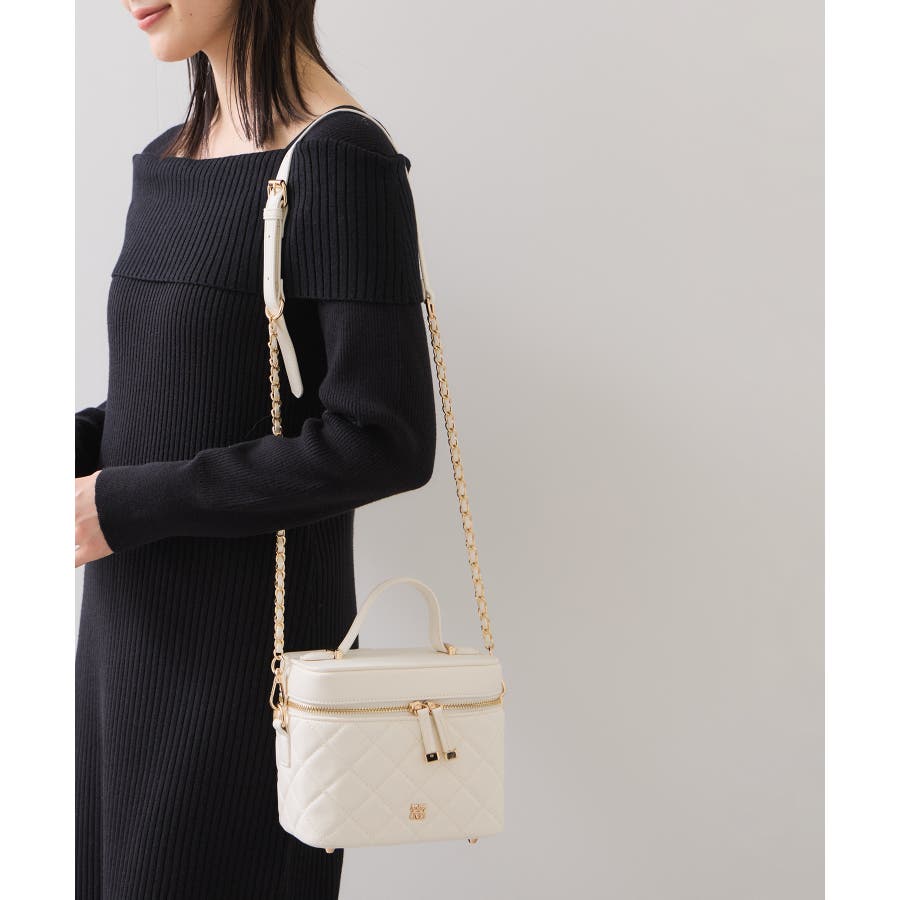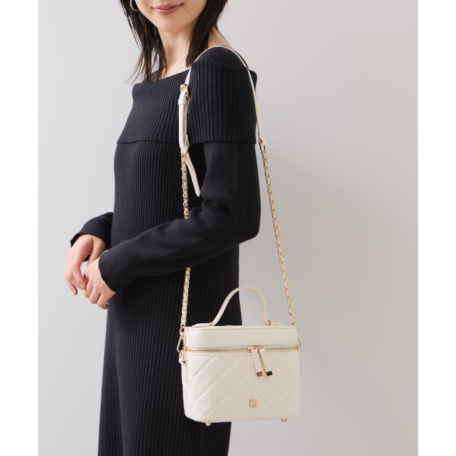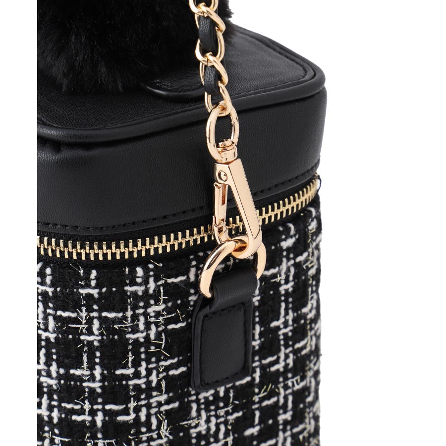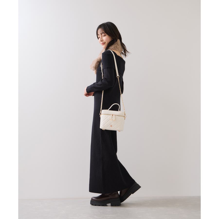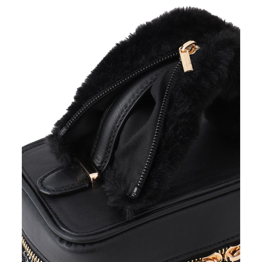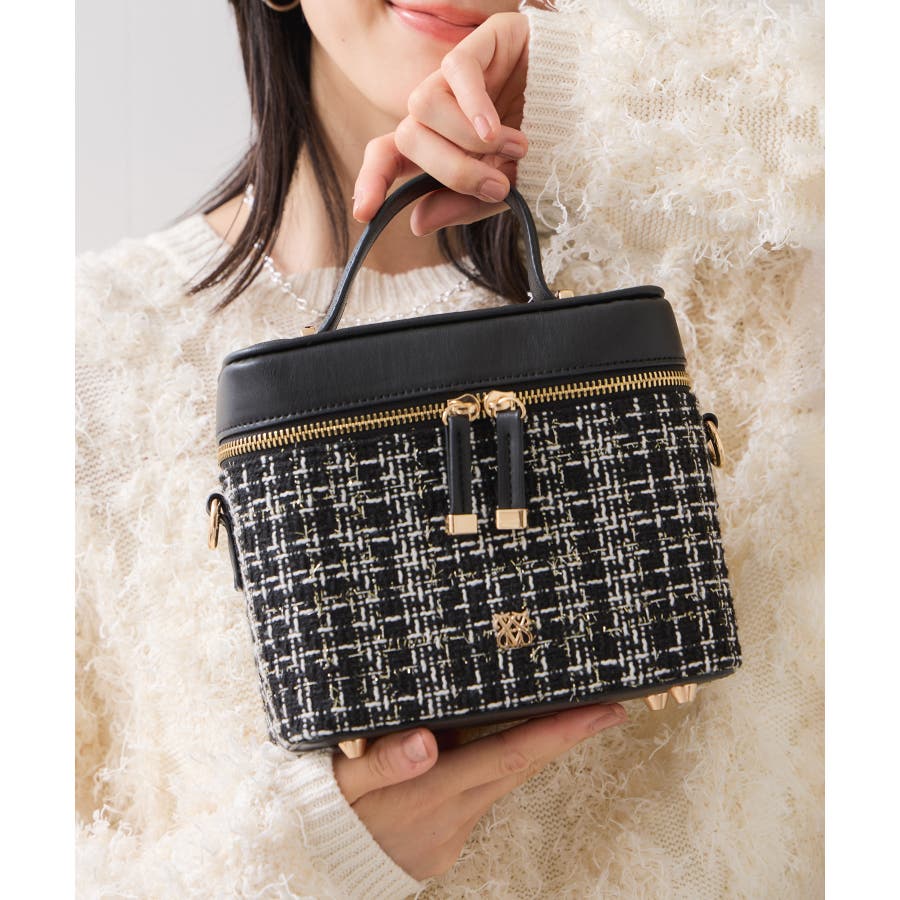 ファーハンドルキルティング&ツイードバニティバッグ/2WAY