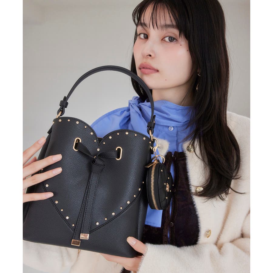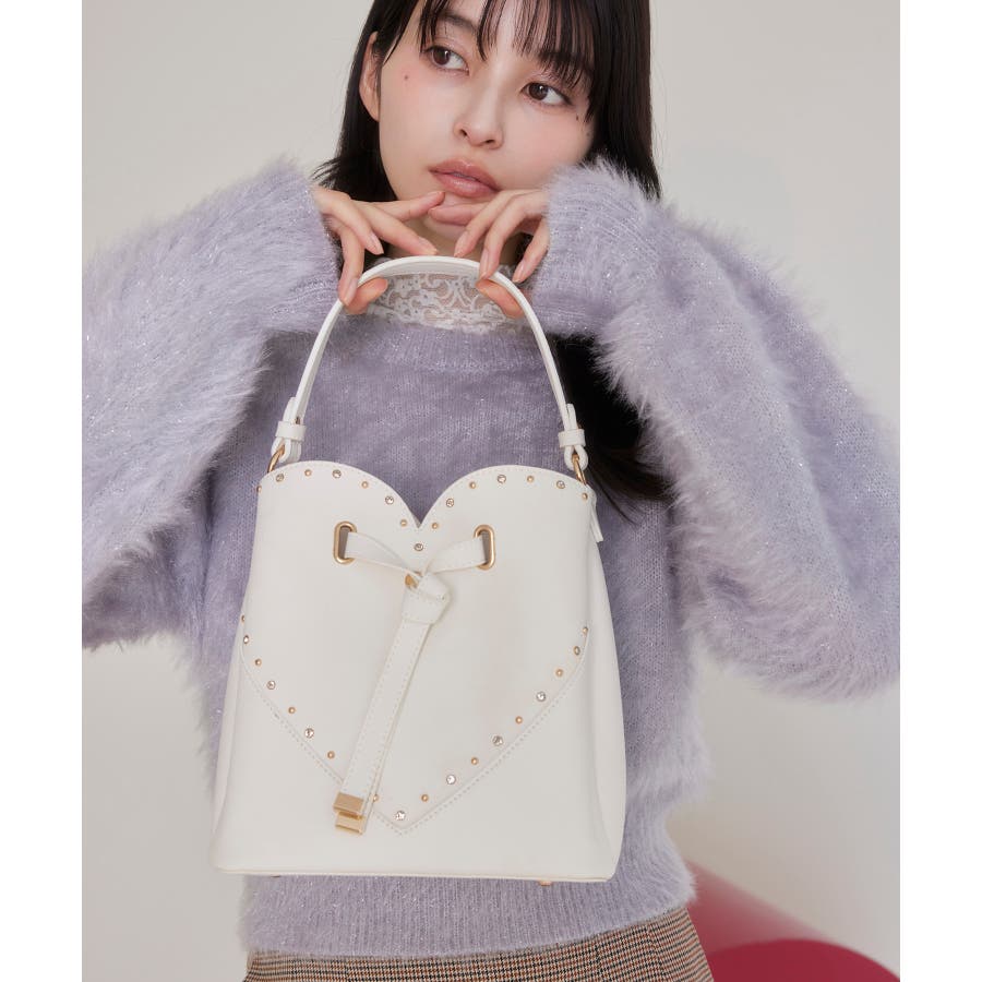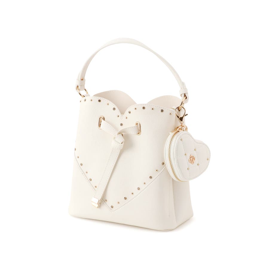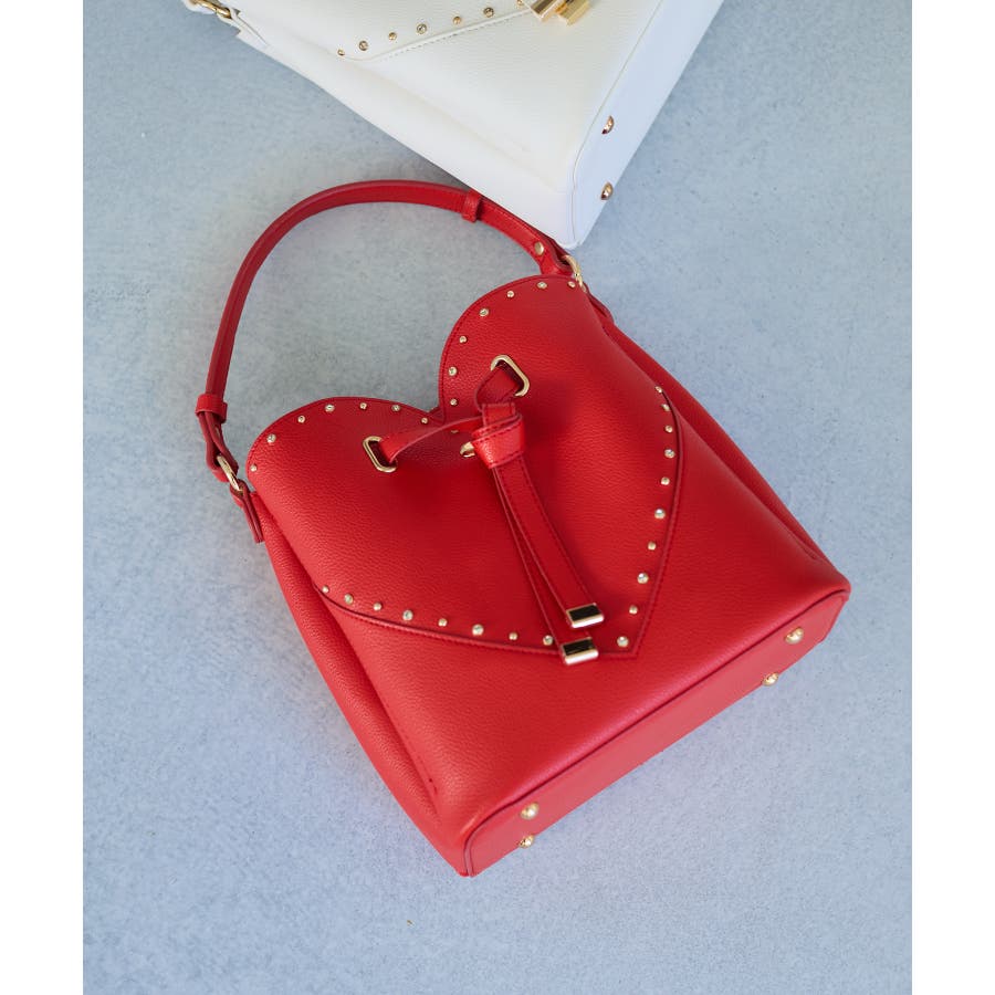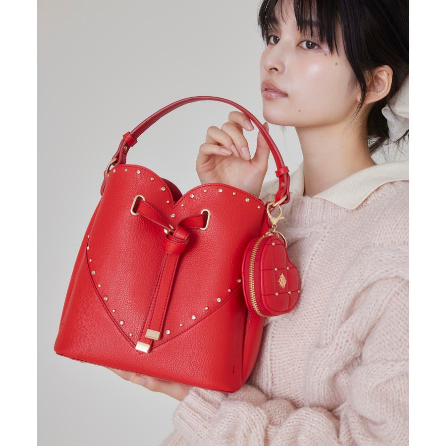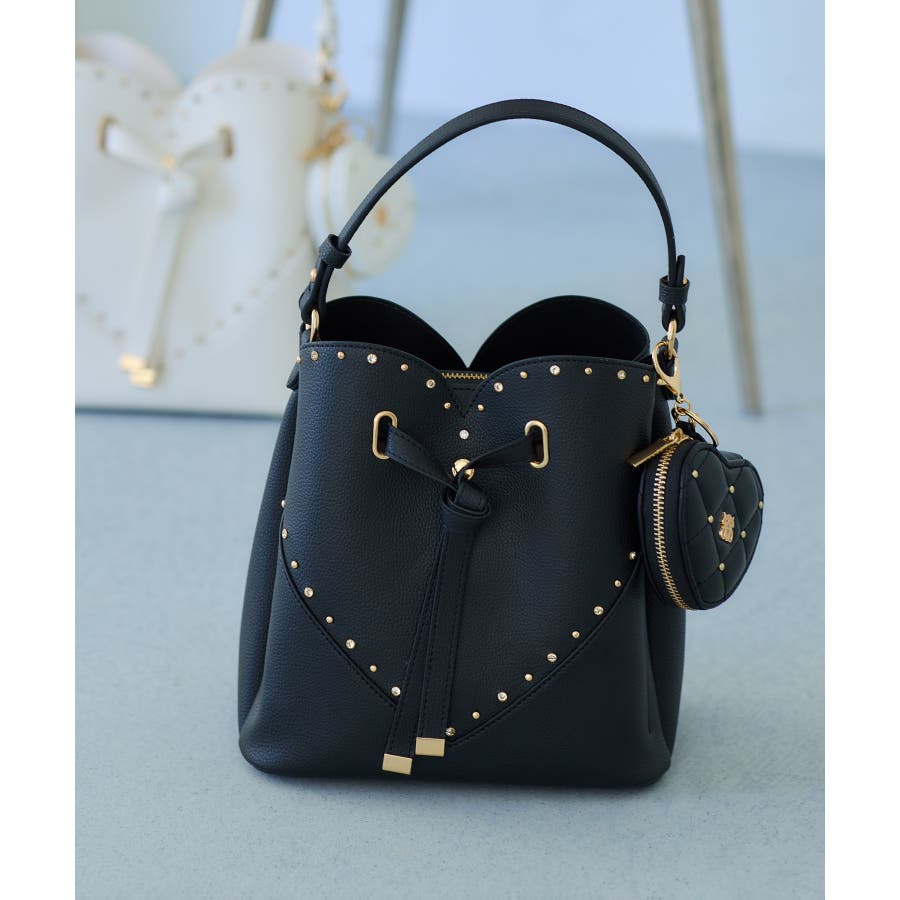 このタイミングでしか手に入らない、スタッズとラインストーンがハート型に施された特別なハートカットバッグです。