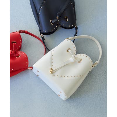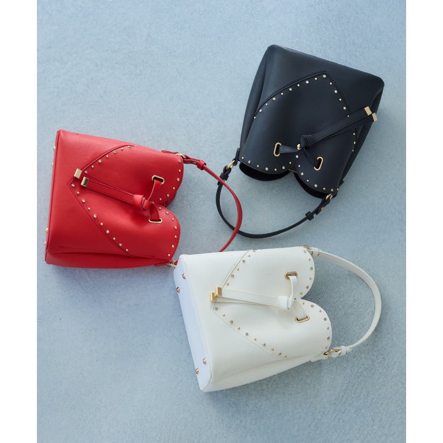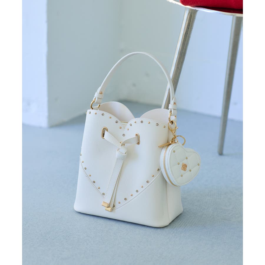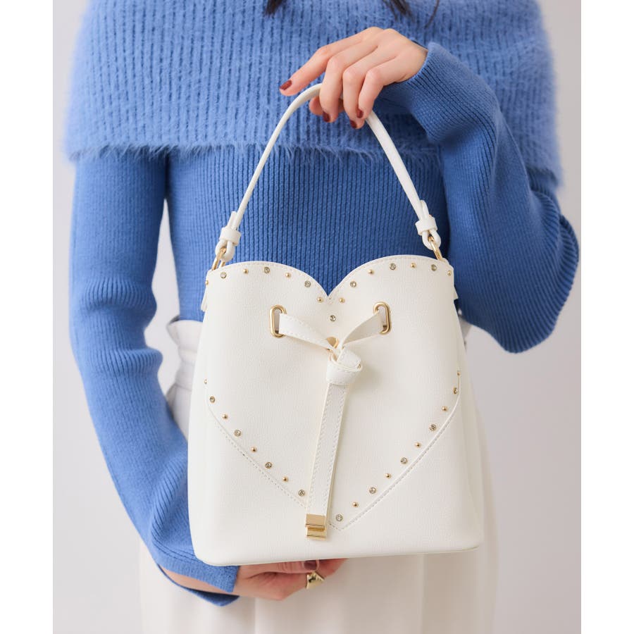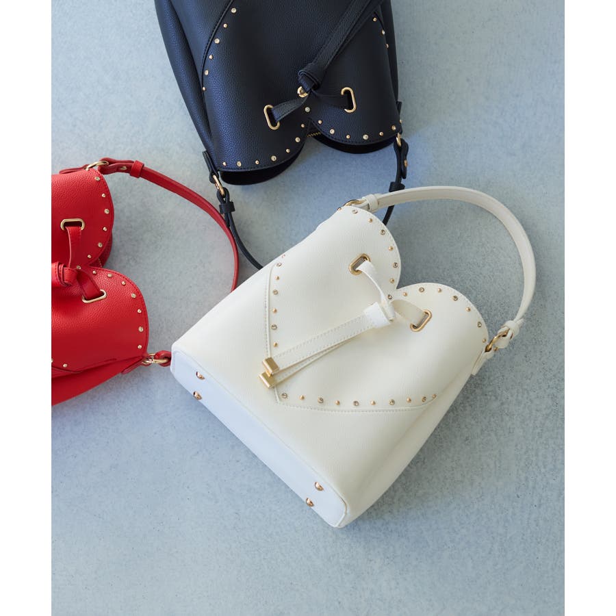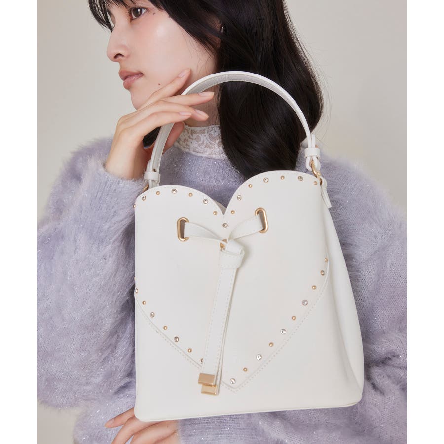 このタイミングでしか手に入らない、スタッズとラインストーンがハート型に施された特別なハートカットバッグです。