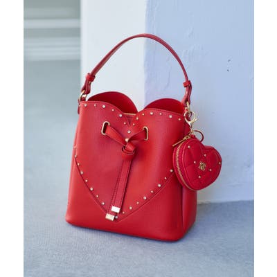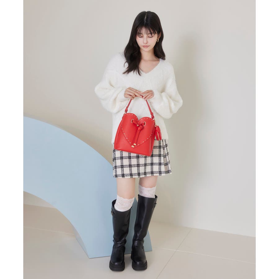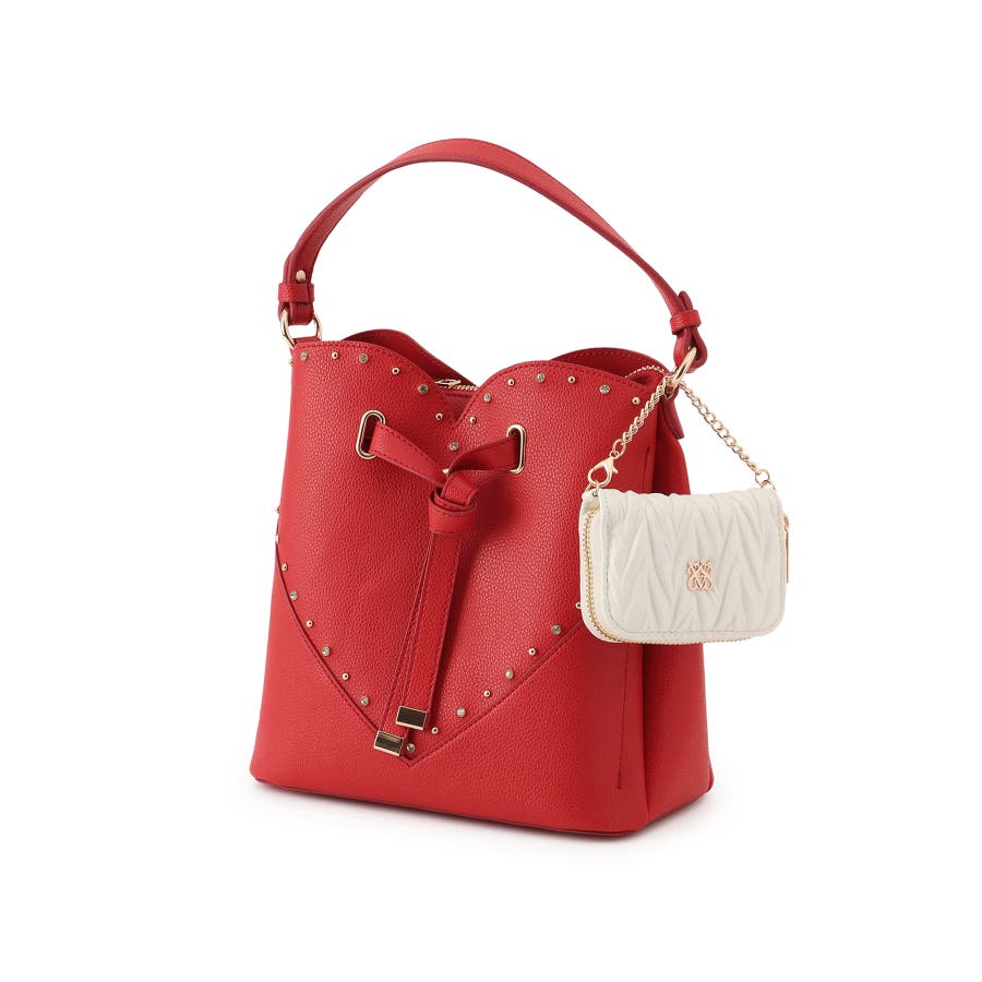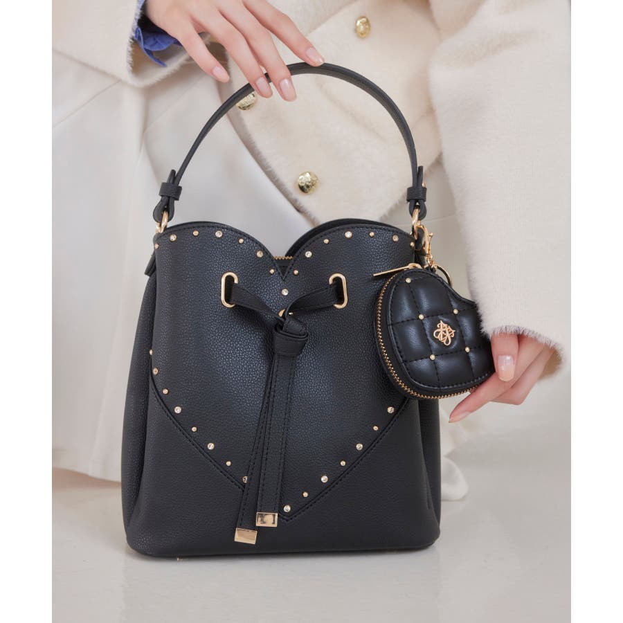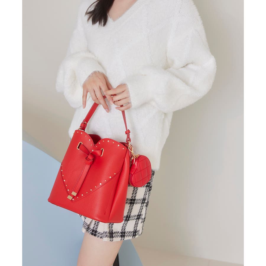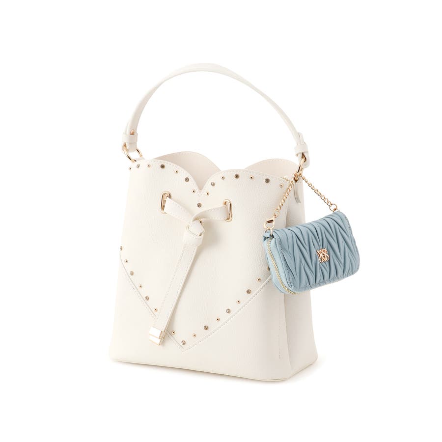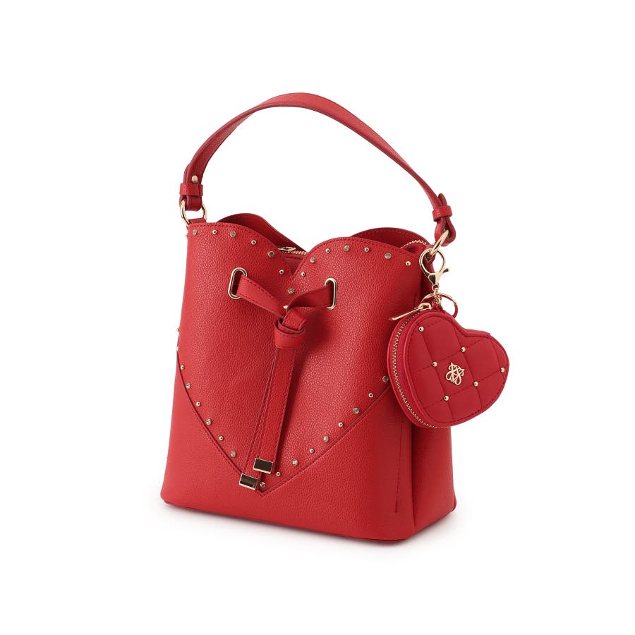 このタイミングでしか手に入らない、スタッズとラインストーンがハート型に施された特別なハートカットバッグです。