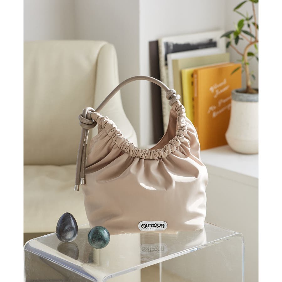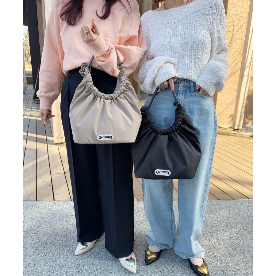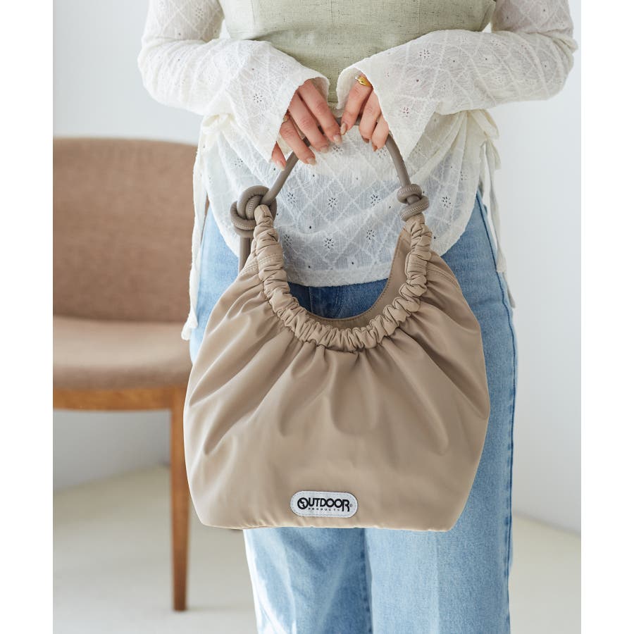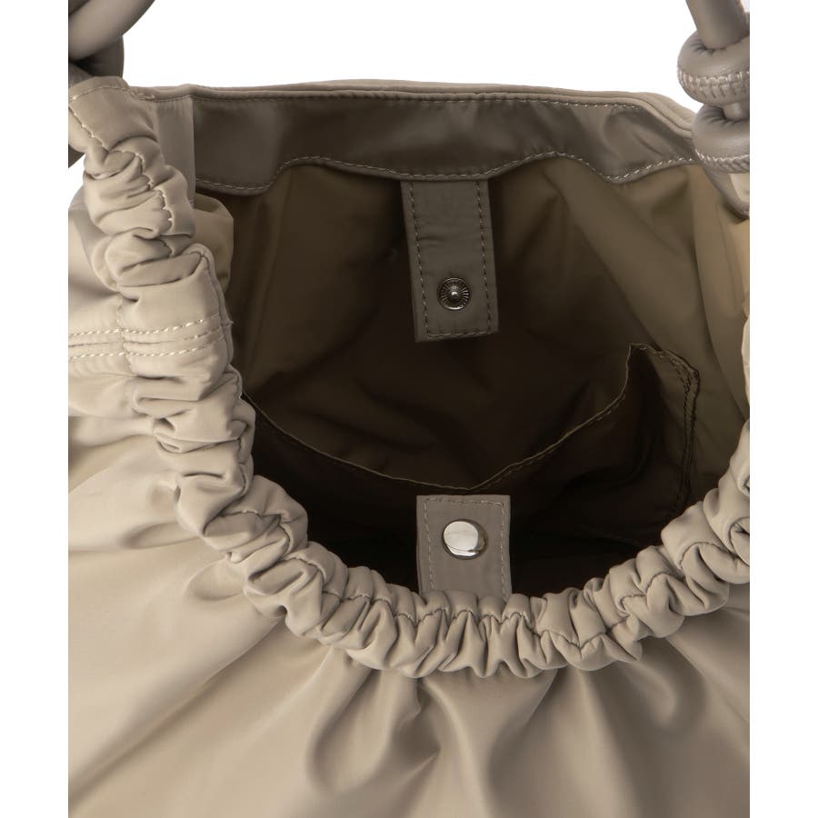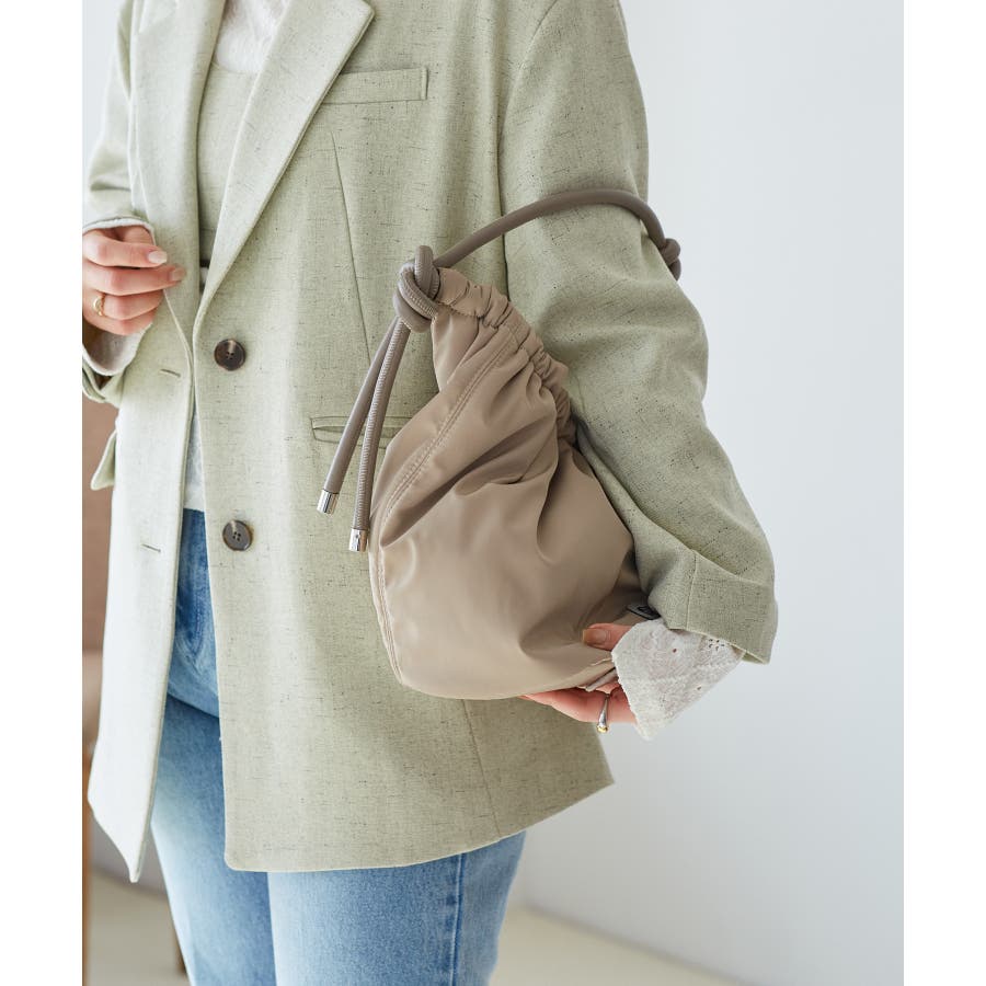 くしゅっとした入り口、シンプルな持ち手が特徴の大人可愛いデザイン。
