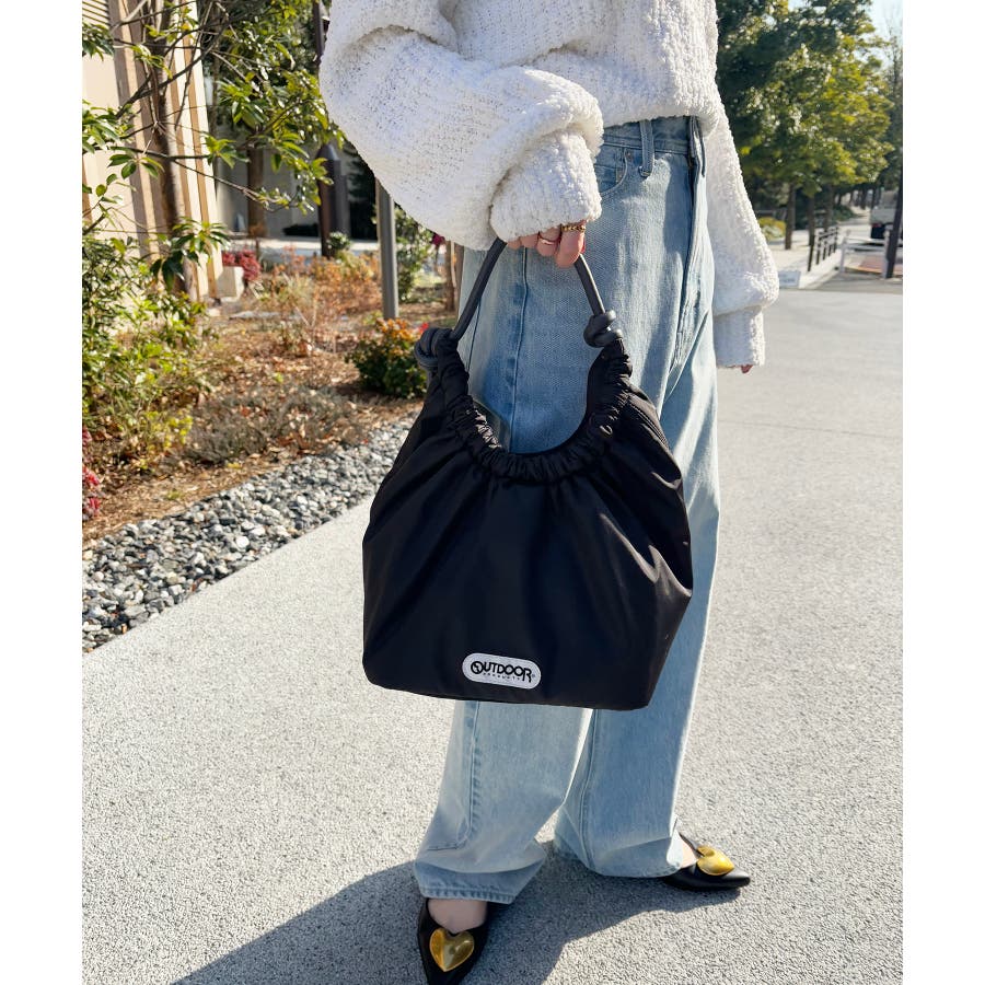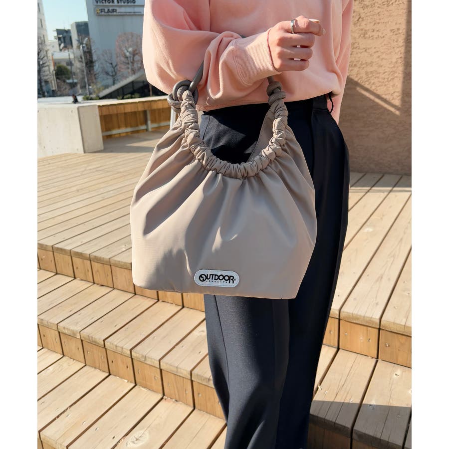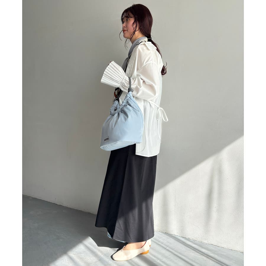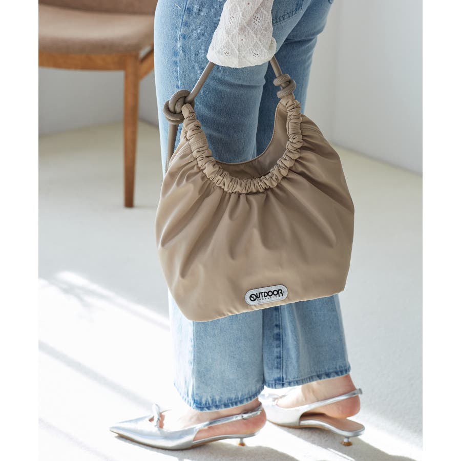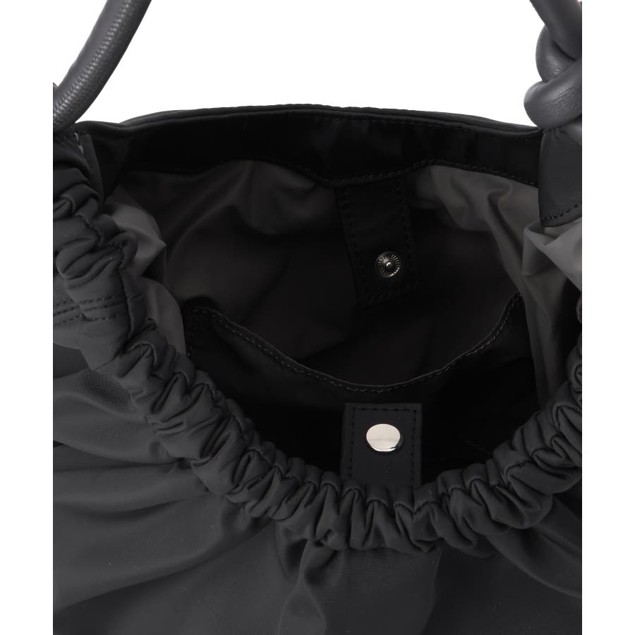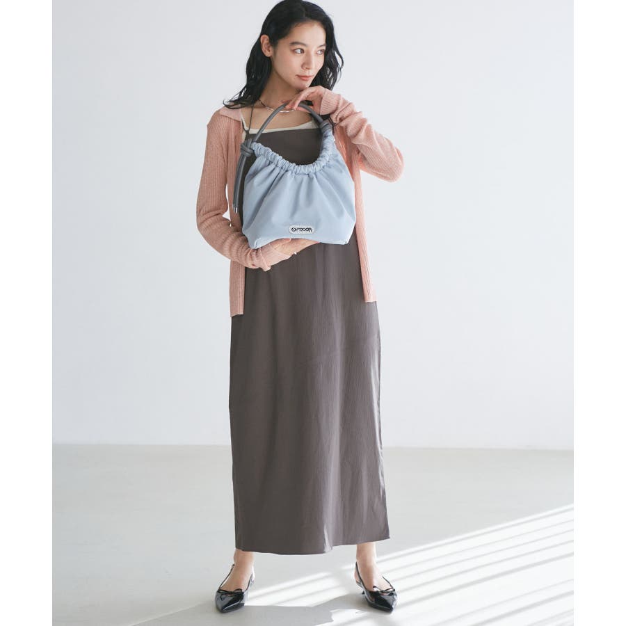 くしゅっとした入り口、シンプルな持ち手が特徴の大人可愛いデザイン。