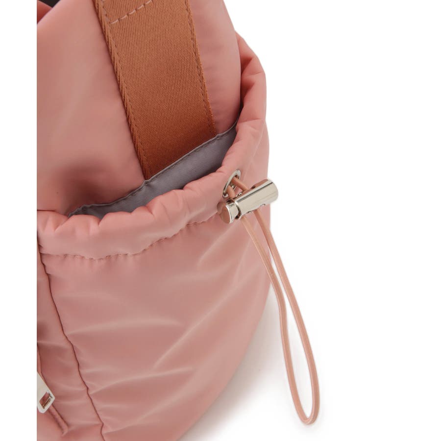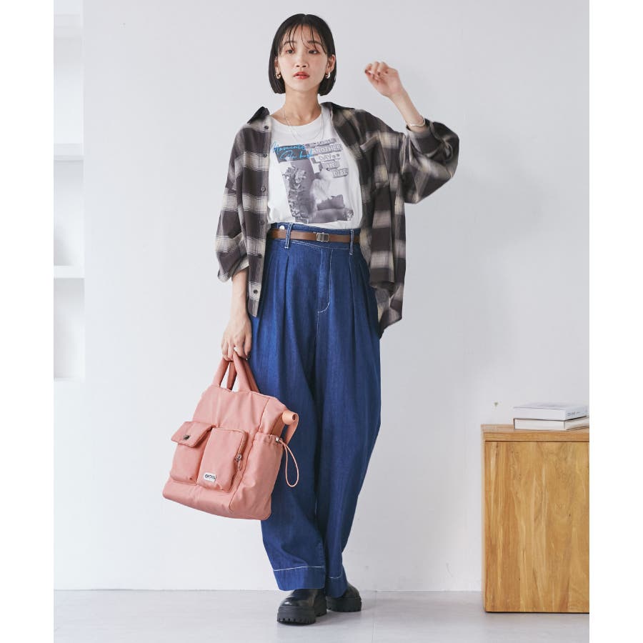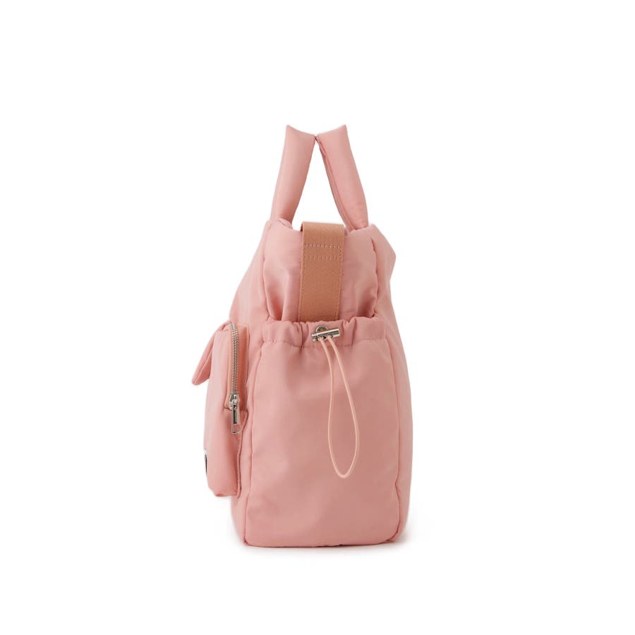・サイドのポケットはドロスト仕様でギュッとしぼることでバッグの表情が変わるのもポイント。折り畳み傘やペットボトルを入れるのに便利です。
