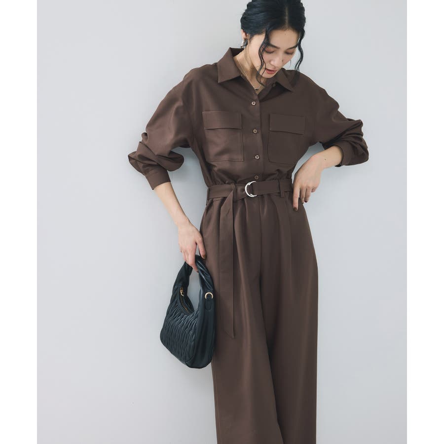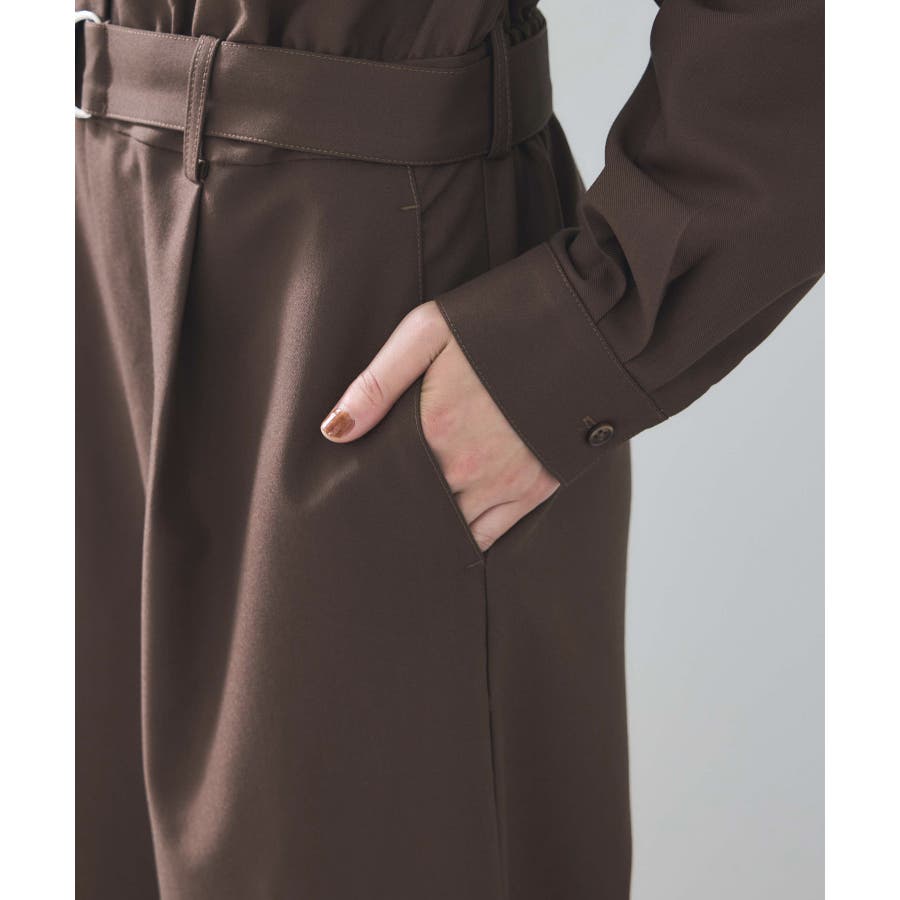 体型を拾わない美しいワイドシルエットや、ベルトでウエストをマークすることで、シルエットにメリハリが生まれ、、スタイルアップを演出します。