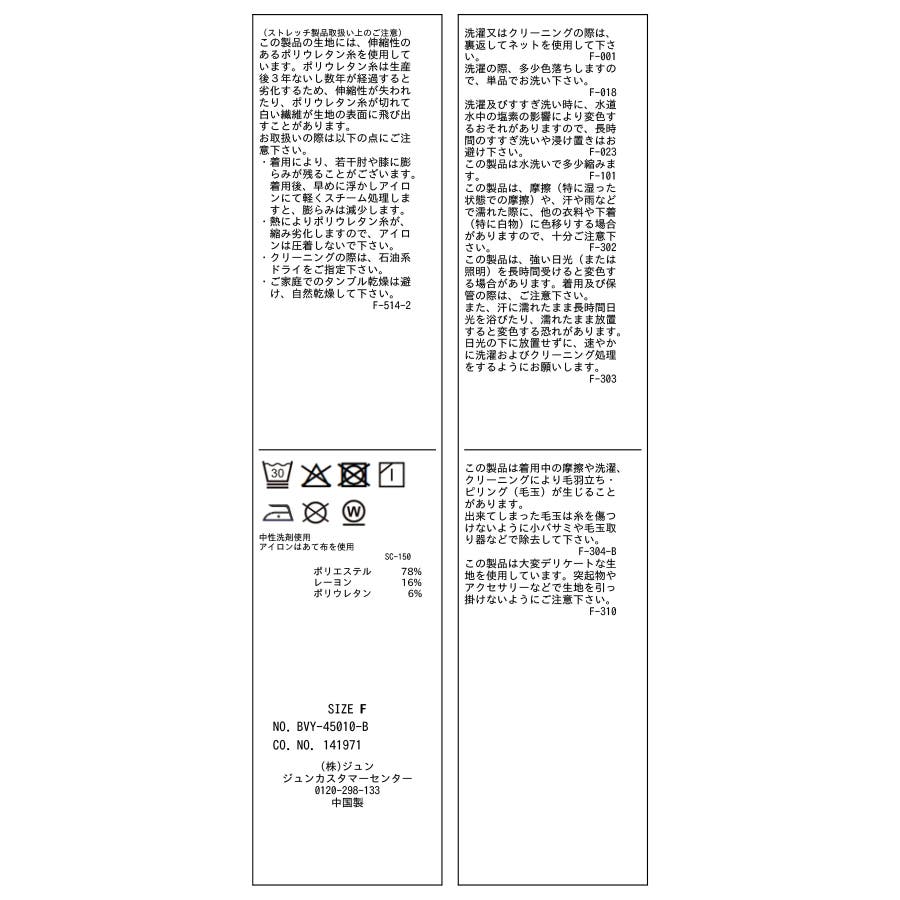【洗濯表記】洗濯機|漂白不可|タンブル乾燥不可|自然乾燥|アイロン仕上げ可|ドライ不可|ウエットクリーニング可