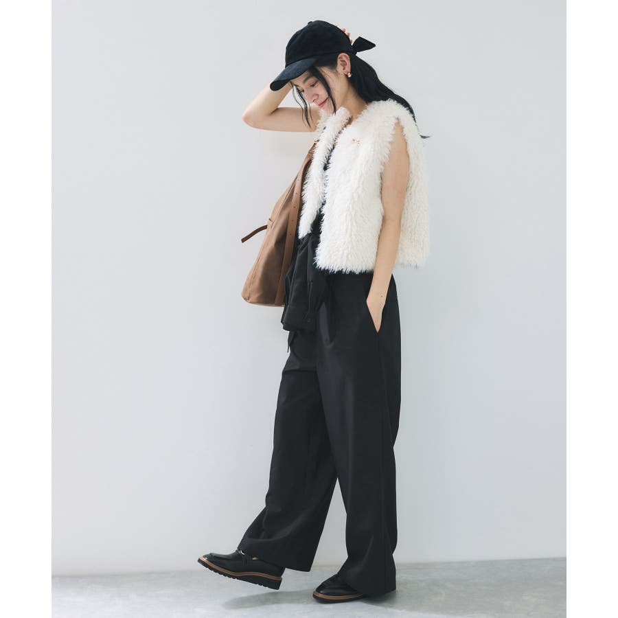 質感やシルエット、襟の開き方で甘すぎない大人な雰囲気を醸し出してくれる1枚です。