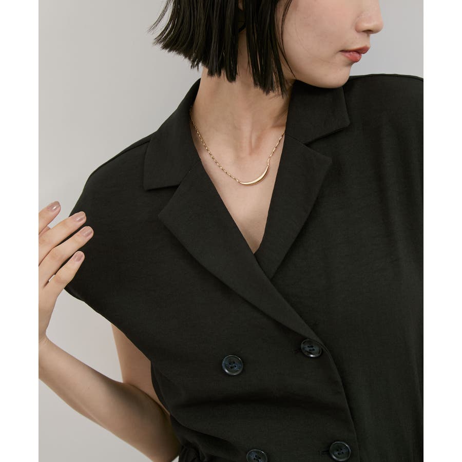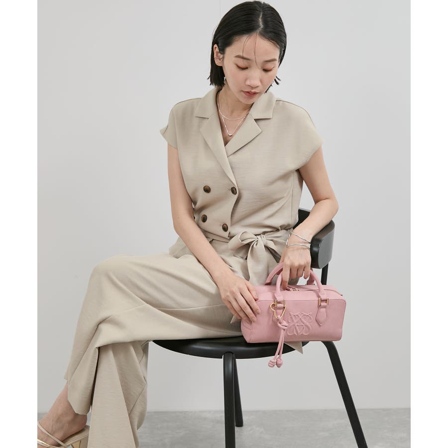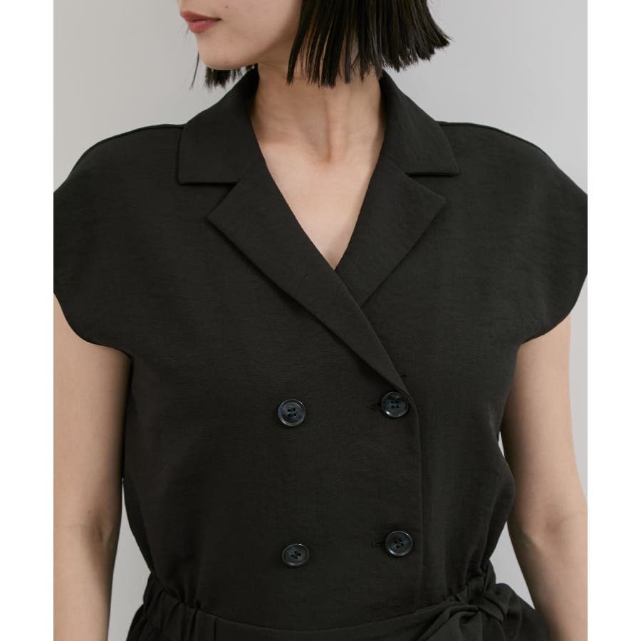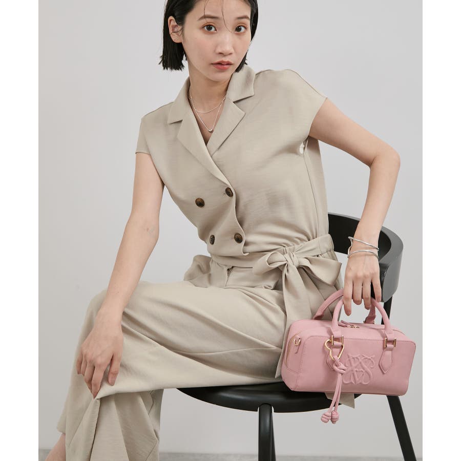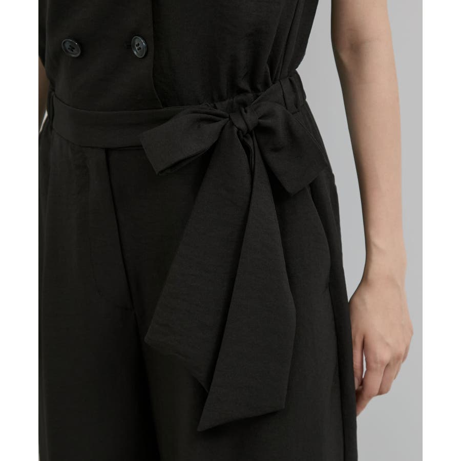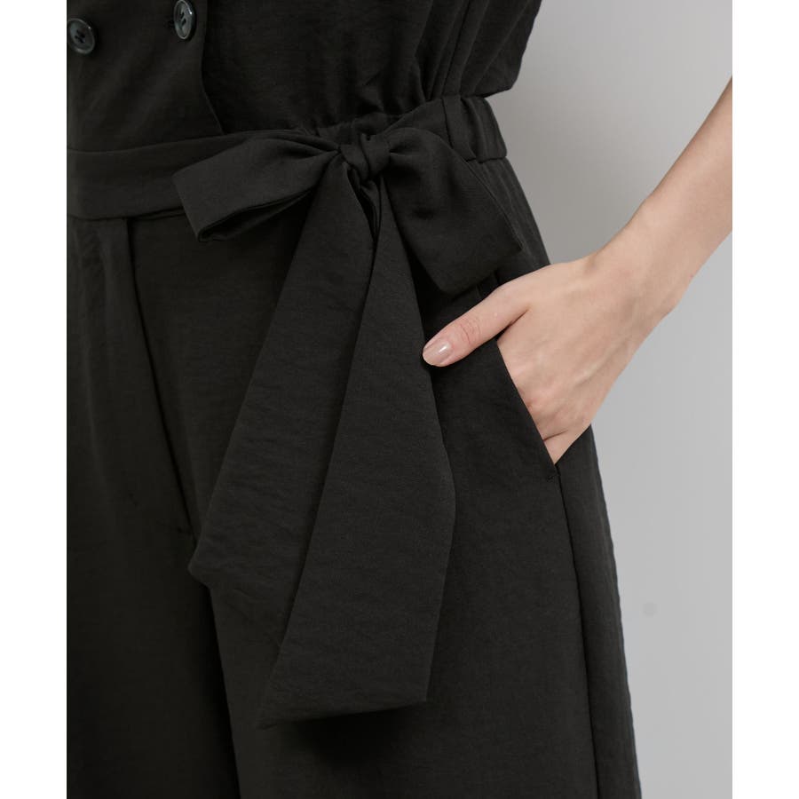 ダブル釦でスタイリッシュな雰囲気が素敵なオールインワン、かっちりしすぎないようにウエストをゴムにし柔らかい素材を使うことでオンオフどちらでも使えるデザインにしました。