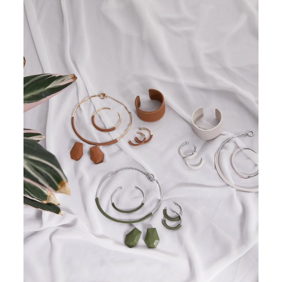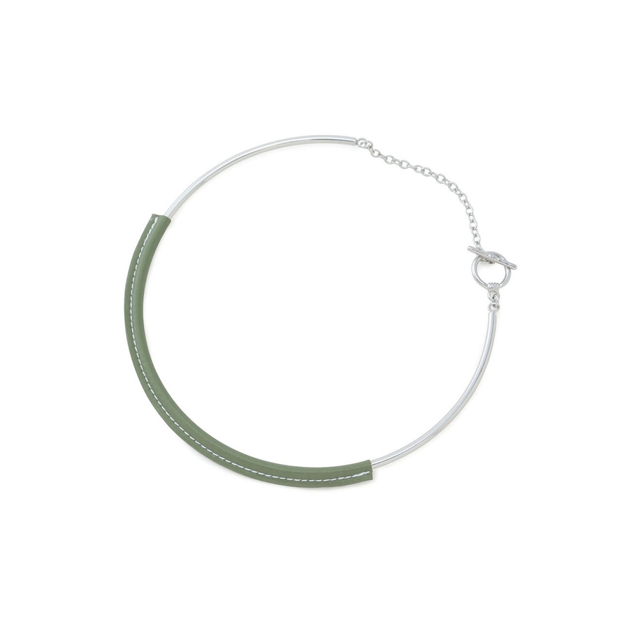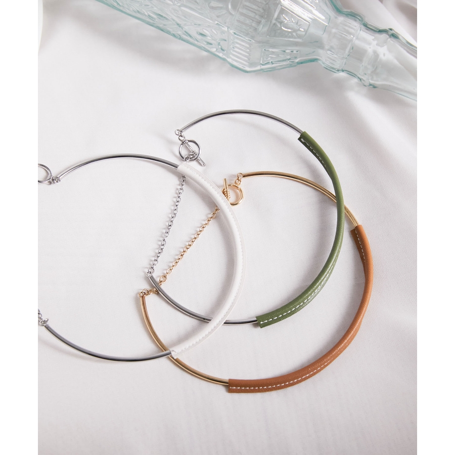 【デザイン・シルエット】 首元のアクセントになるフェイクレザーチョーカーです。 チェーンネックレスなどとの重ね付けがおすすめです。 マンテルで留める仕様なので着脱も簡単にしていただけます。 【素材】 エコレザーとの異素材MIX。 【カラー】 大人な落ち着いたカラー。 ※画像の商品はサンプルです。 実際の商品と仕様、加工、サイズが若干異なる場合がございます。