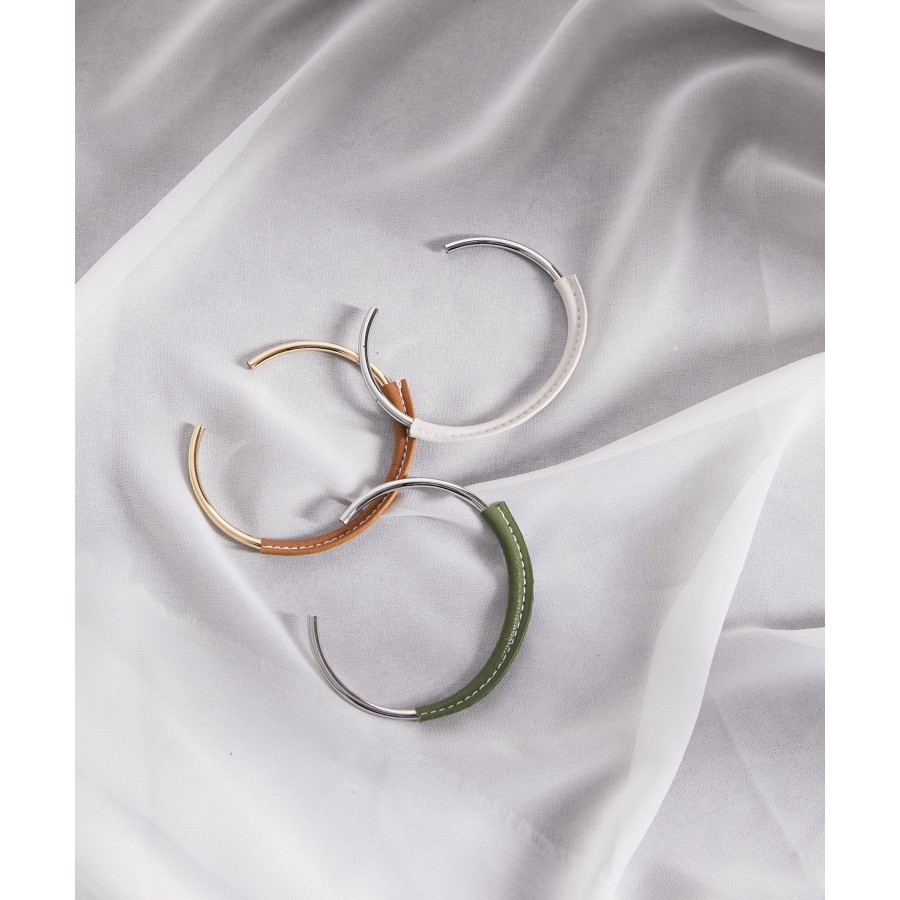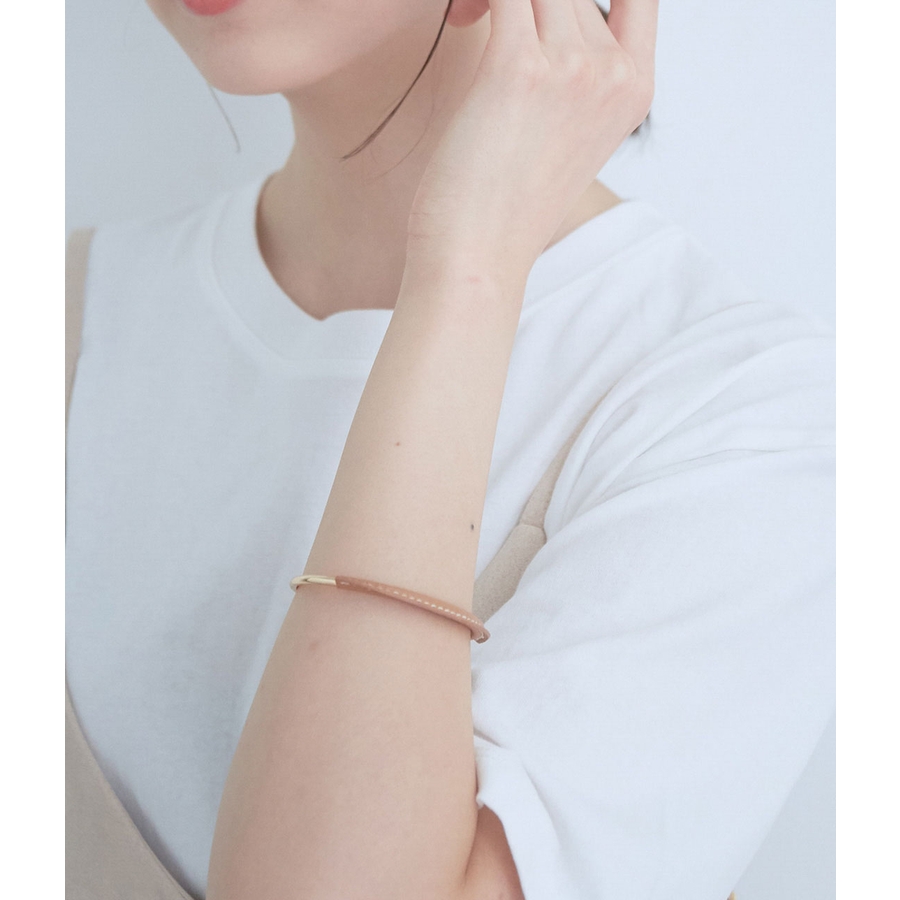【デザイン・シルエット】 トレンド感のあるフェイクレザーがアクセントのバングルです。 シンプルにつけても重ね付けの1本としても使い回せます。 マンテルで留める仕様なので着脱も簡単にできます。 【素材】 春夏スタイリングにプラスしたいフェイクレザー。 【カラー】 ナチュラルで大人なくすみカラー。 ※画像の商品はサンプルです。 実際の商品と仕様、加工、サイズが若干異なる場合がございます。