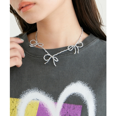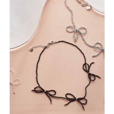 ◆2024春夏◆ 【デザイン・シルエット】 リボンが首に沿うような長さで、見た目以上に使いやすい仕上がりです。 いつものコーデにプラスするだけで今っぽコーデに◎ 首元が開くトップスにはもちろん、カジュアルなロンTなどにもラフに合わせて頂くのもおすすめです。 【カラー】 ベーシックに使えるブラックと、涼し気な印象でお使いいただけるシルバーとクリアの3色展開でのご用意です。 ※シルバー(93)はクリア。、その他(99)はシルバーとなります。画像をご確認ください。 ※画像の商品はサンプルです。 実際の商品と仕様、加工、サイズが若干異なる場合がございます。