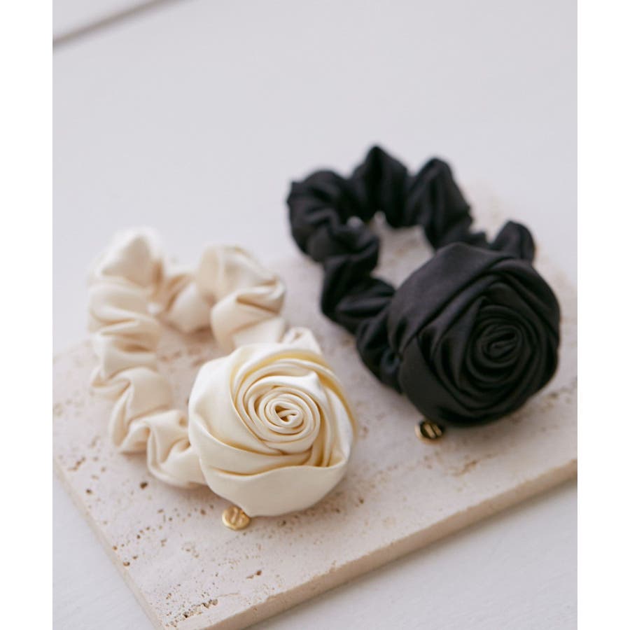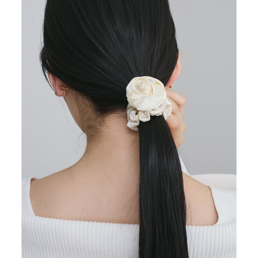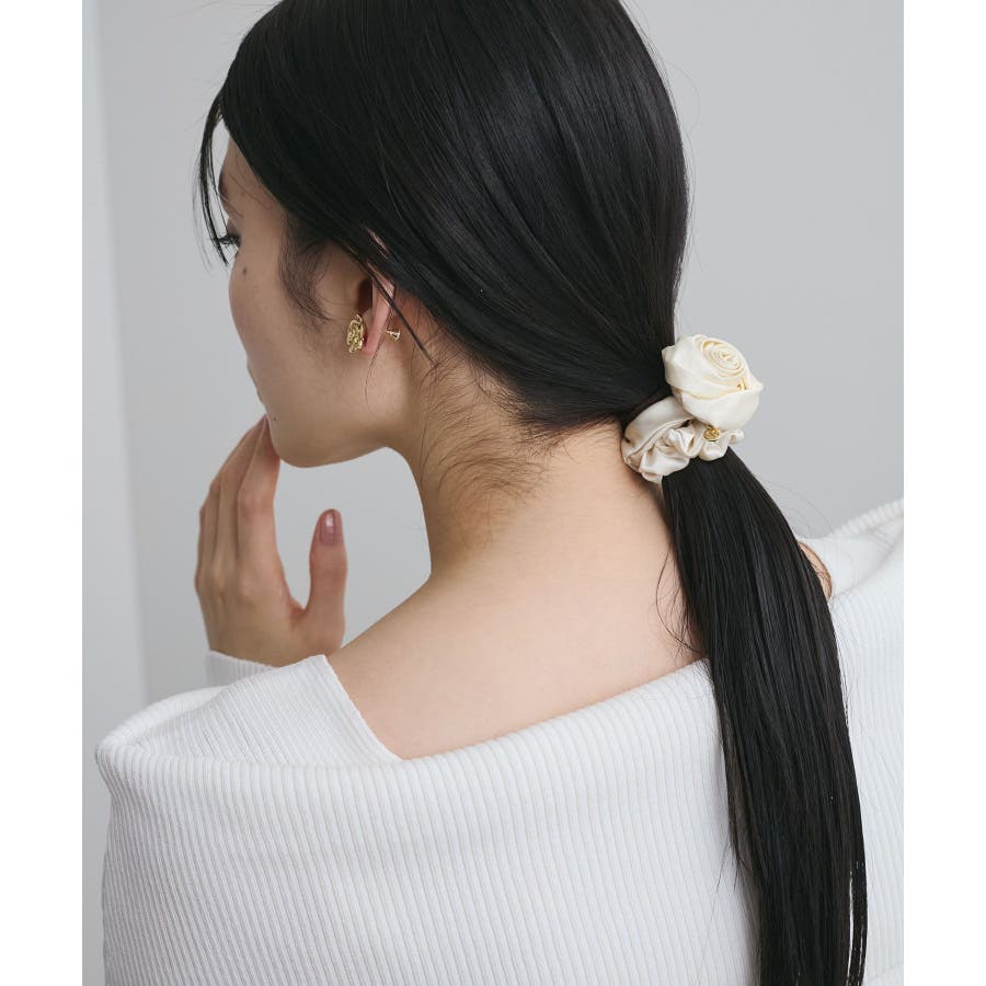 ◆2025春夏◆ 【デザイン・シルエット】 今年気分なバラモチーフのヘアゴムシュシュ。 バラの大きさも程良く、ロゴチャームを付けているのでそのままゆるっと結んで頂くだけで可愛く決まります◎ 【カラー】 ブラックとオフホワイトの2色展開。 【おすすめのスタイリング】 クラシカルなテイストに遊び心を足すように合わせて頂くのがおすすめです。 ※画像の商品はサンプルです。 実際の商品と仕様、加工、サイズが若干異なる場合がございます。