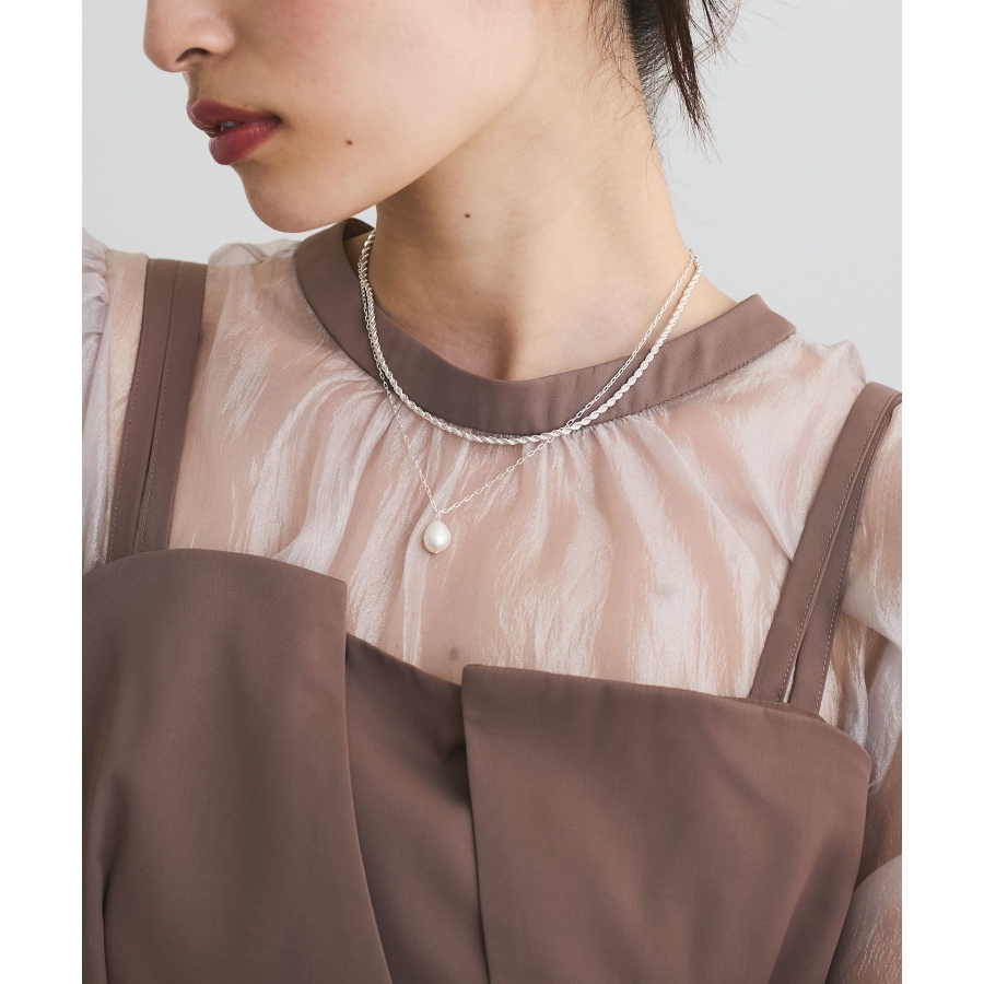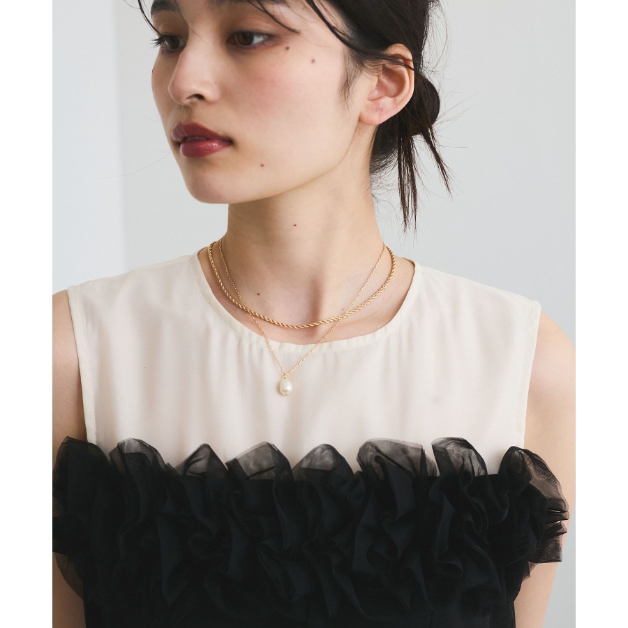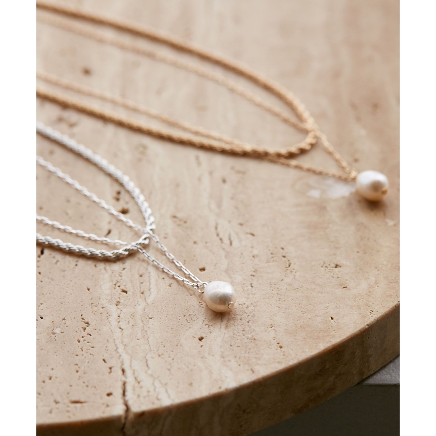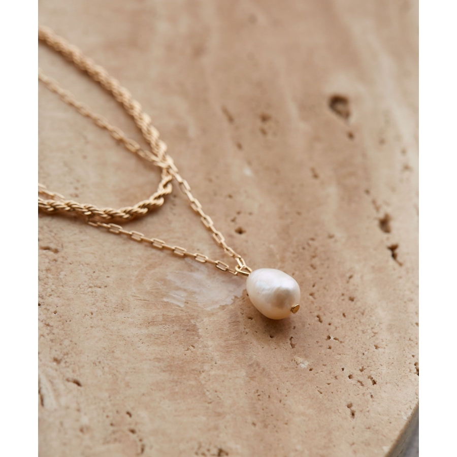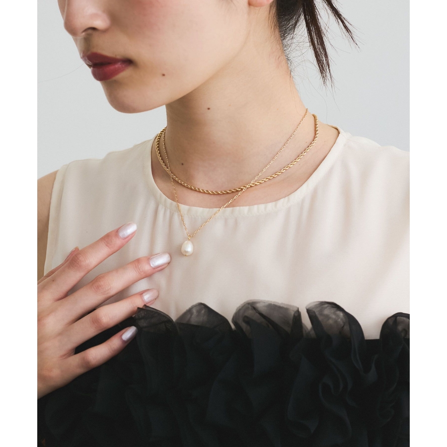 ◆2025春夏◆ 【デザイン・シルエット】 程良いボリュームのチェーンとV字に落ちる一粒の淡水パールが首回りのラインを綺麗に見せてくれるバランスのネックレスです。 【カラー】 ゴールドとシルバーの2色展開。 【おすすめのスタイリング】 ジャケットスタイリングやオケージョンドレスに合わせて頂くのがおすすめです。 ※画像の商品はサンプルです。 実際の商品と仕様、加工、サイズが若干異なる場合がございます。