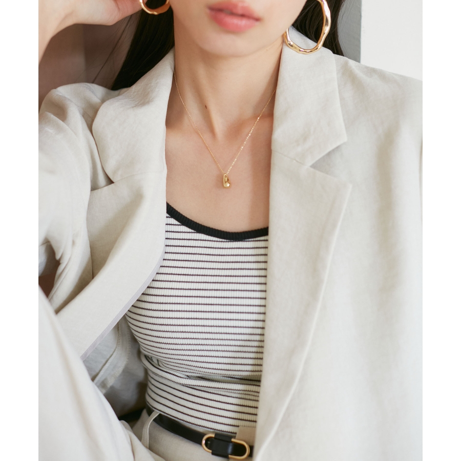 ◆2024春夏◆ 【デザイン・シルエット】 ぷりっとしたメタルのティアドロップが大人可愛いネックレス。 Y字に落ちるので首周りスッキリ見せてくれます◎ ブラウスなどフェミニンテイストにはもちろん、重ね付けしてカジュアルな合わせもおすすめです。 ※画像の商品はサンプルです。 実際の商品と仕様、加工、サイズが若干異なる場合がございます。