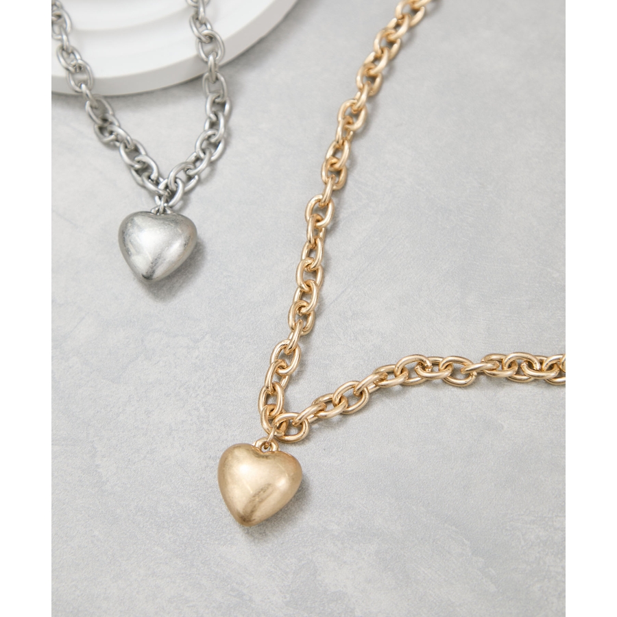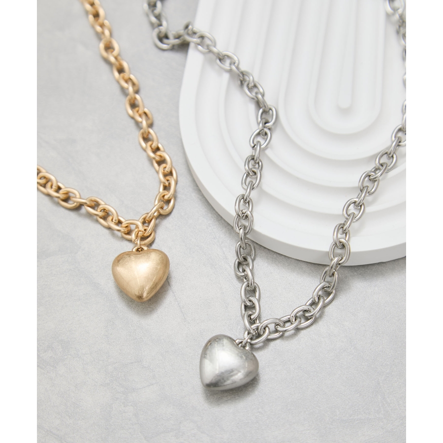 ・ボリュームチェーンとぷりっとしたハートのトップパーツが、シンプルながら使いやすいバランス◎