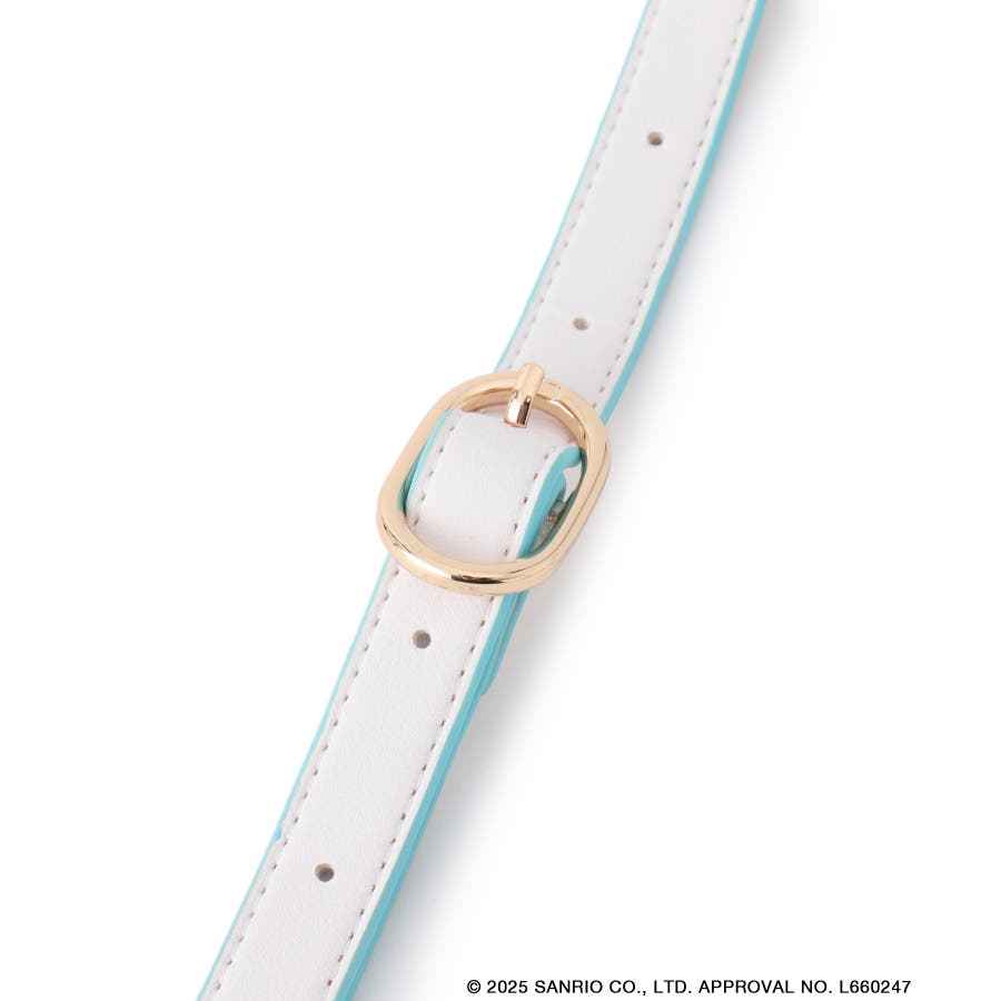 シナモロールをイメージしたオフホワイトの合皮テープとブルーのコバで世界観を感じられる仕上がりに。