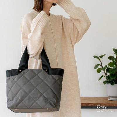 大きめのキルティング加工を施したトートバッグ。