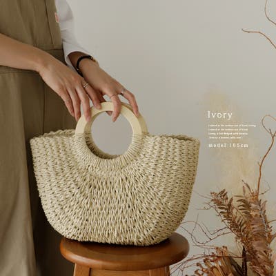 丸みのあるフォルムに丸い木のハンドルを合わせたナチュラルテイストのかごバッグです。