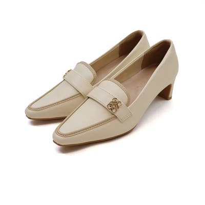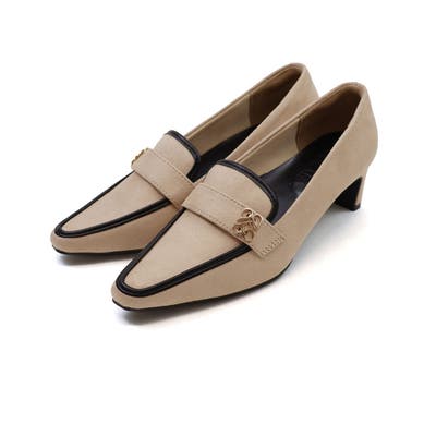 スクエアトゥモノグラム5cmプレートヒール感激ローファーパンプス