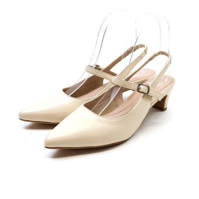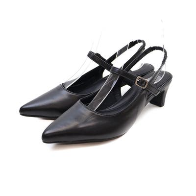 ポインテッドトゥスリングバック5cmプレートヒール感激パンプス
