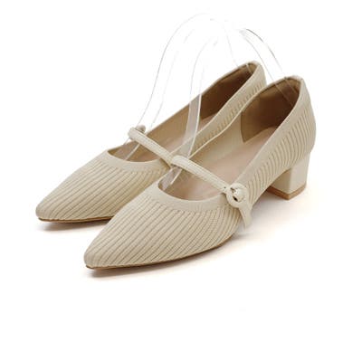 ポインテッドトゥメリージェーン4cmヒール感激ニットパンプス