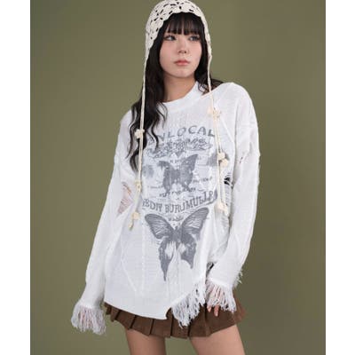 ダメージバタフライフリンジニット