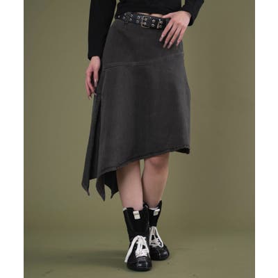 【エッジを効かせるアシメヘム×スタッズベルトスカート】