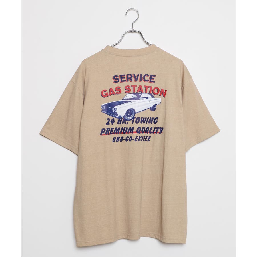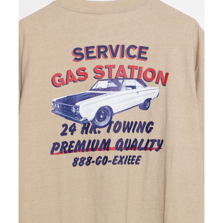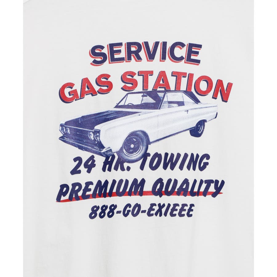 ヴィンテージ車とGAS STATIONのバックプリントがアメカジ感あふれる1枚◎