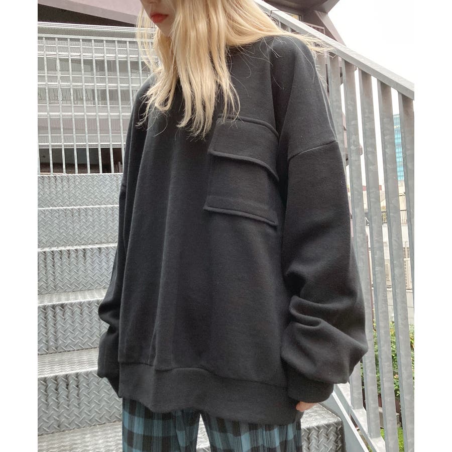 右胸にフラップポケットを取り入れたオーバーサイズスウェット。