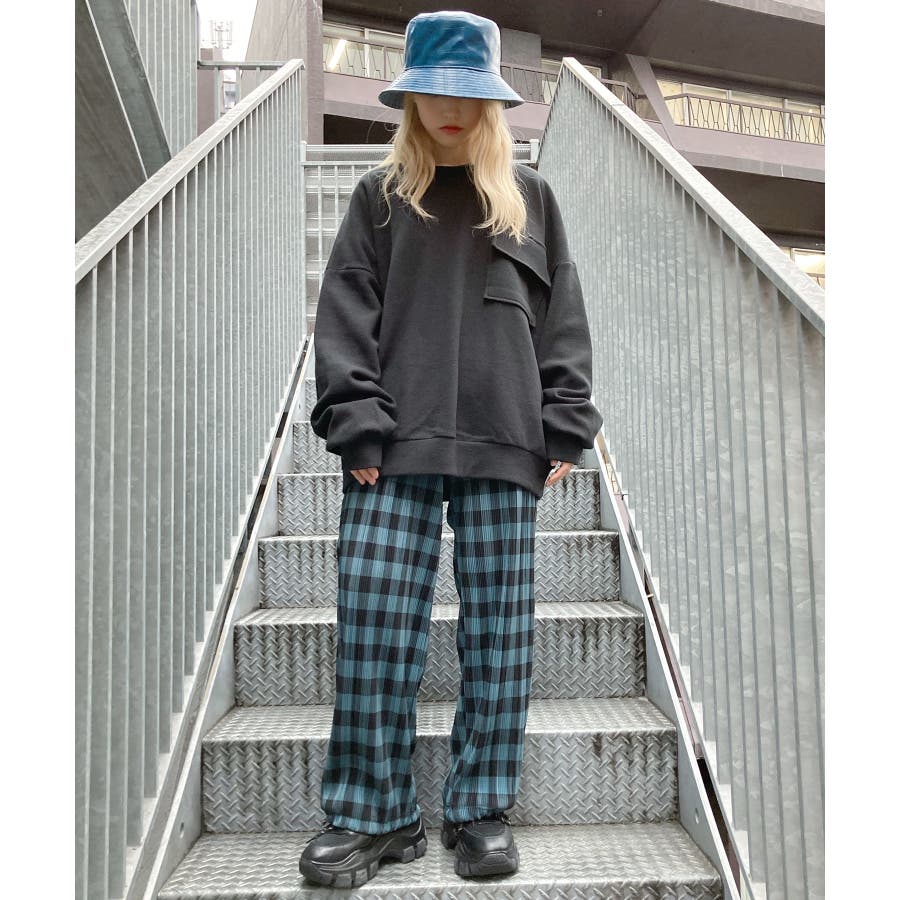 仕様:フロントポケット、リブ、オーバーサイズ、クルーネック、ポンチ