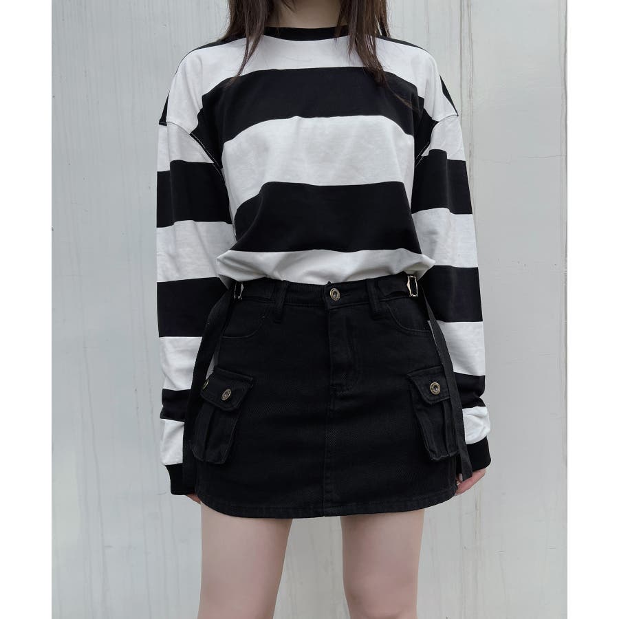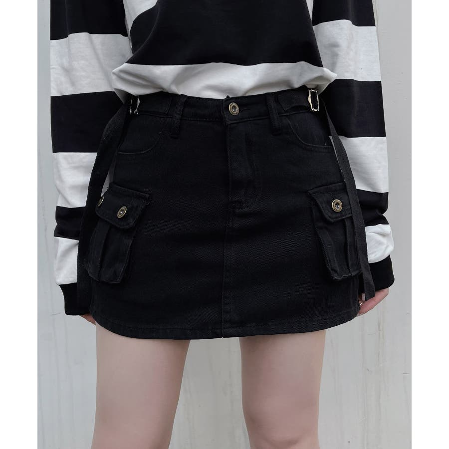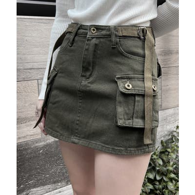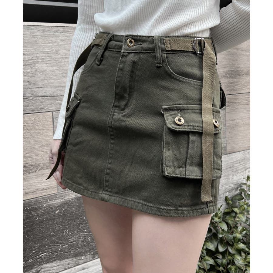 ミリタリーデザインをミニスカートに落とし込んだ1枚。