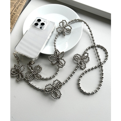 お花型に編んだビーズがポイントのモバイルショルダー。