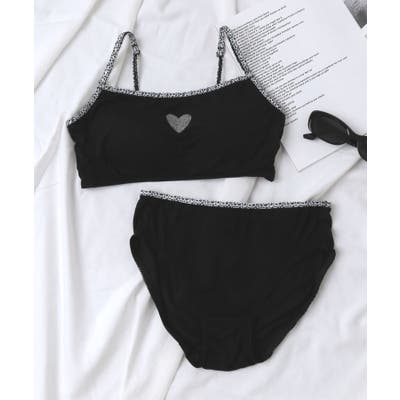 フロントのラメハートモチーフがポイントになったブラトップ&ショーツセット。