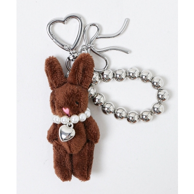 ふわふわの小さなアニマルに、ビジューやパールがついた上品デザインのチャームキーホルダー。