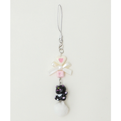 ハート×リボン×ネコの組み合わせが可愛すぎる“ネコぽんぽんビーズストラップキーホルダー”。