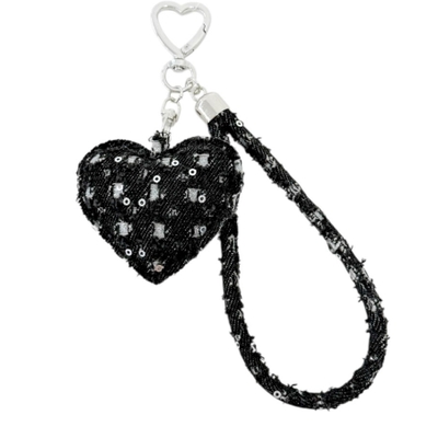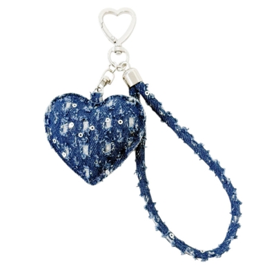 デニム素材のハートモチーフがポイントになったキーホルダー。