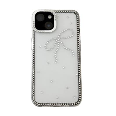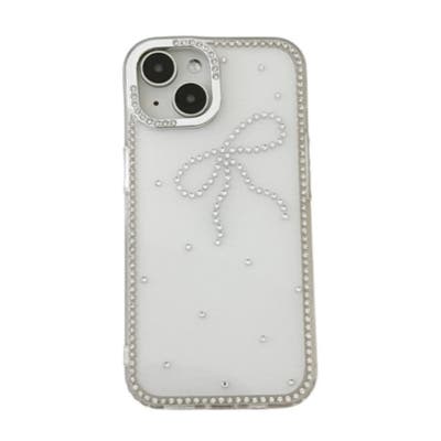 ビジューで描いたリボンモチーフが映えるiPhoneケース。