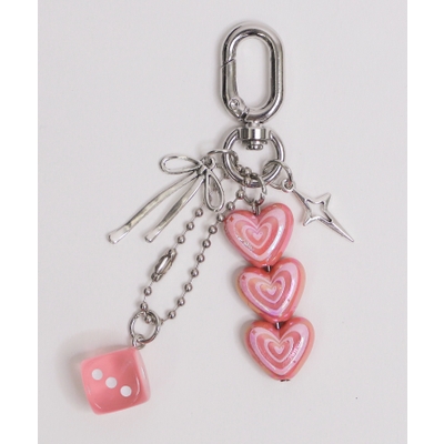 ハートやサイコロもちーふがついたキーホルダー