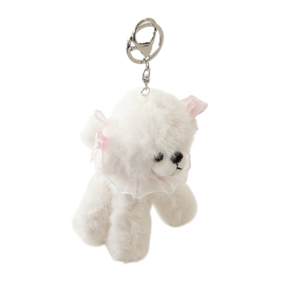 上品なリボンをまとったドッグモチーフのぬいぐるみキーホルダー。