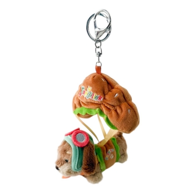 ゴーグルにヘッドセット、パイロット仕様のコスチュームをまとったドッグが可愛い、存在感たっぷりのぬいぐるみキーホルダー。
