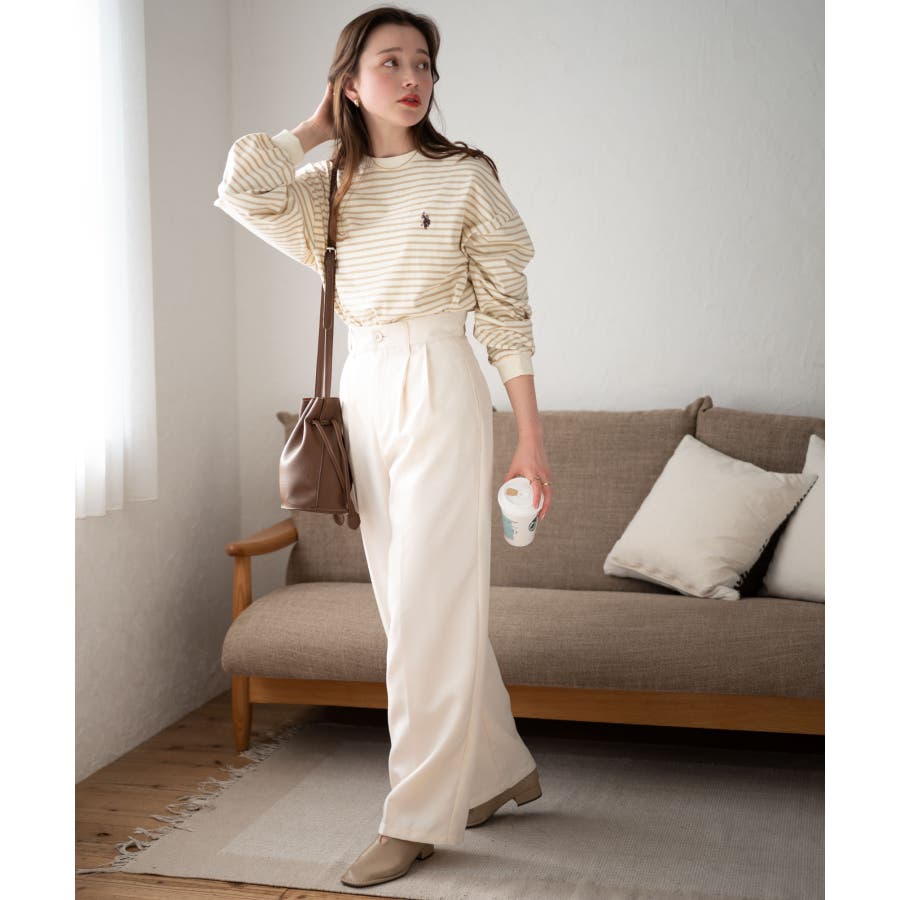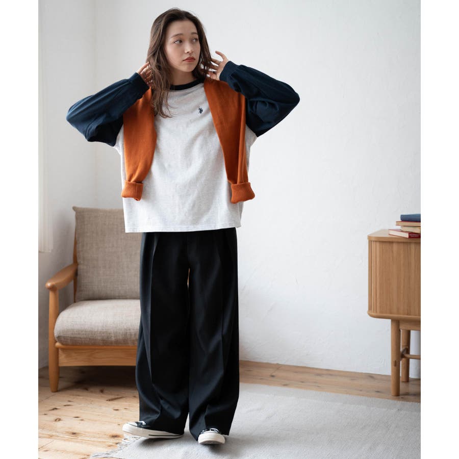 USPOLOだぼそでカラーロンT レディース ユニセックス 夏 春 秋 冬 秋冬 秋服 オールシーズン 無地 長袖 ポロ POLO ロンT Tシャツ 韓国 韓国ファッション WEGO ウィゴー 20代 30代 40代 50代 ガーリー カジュアル ベーシック ゆったり だぼ袖 大きめ ビッグシルエット