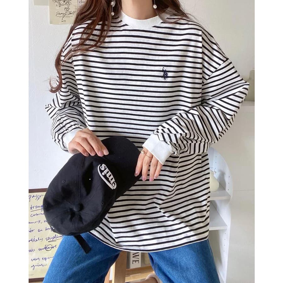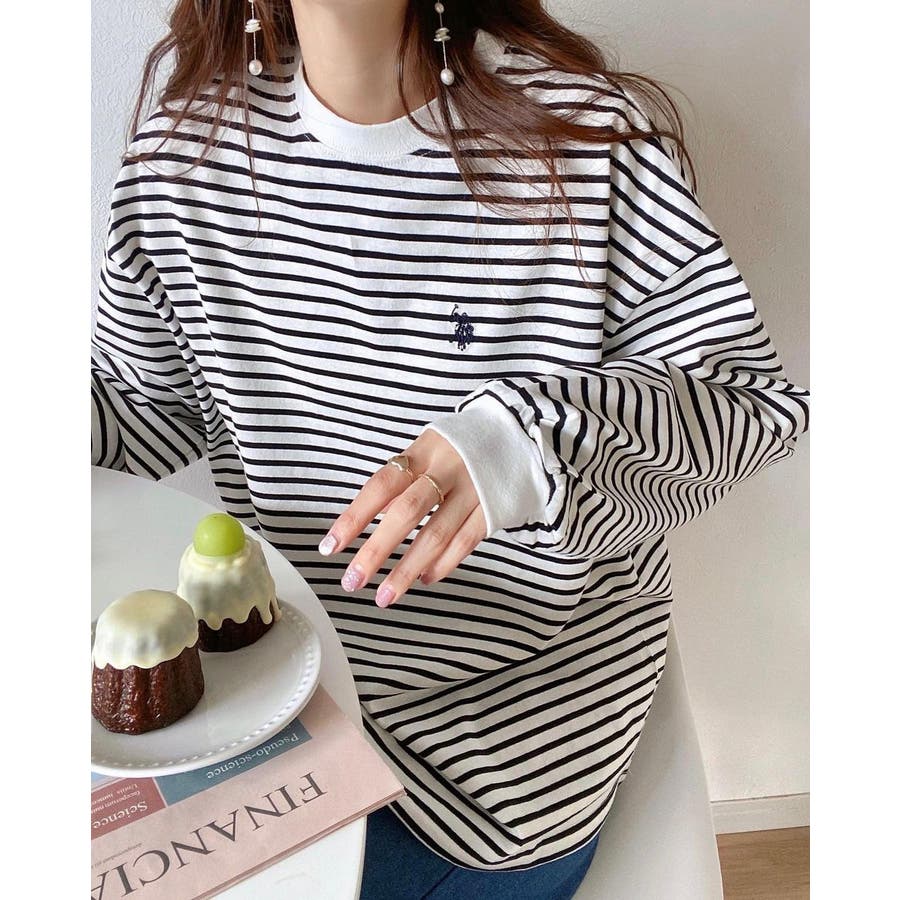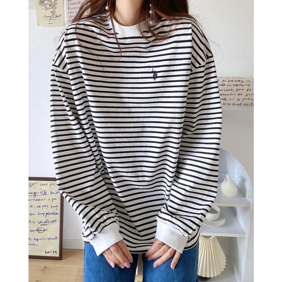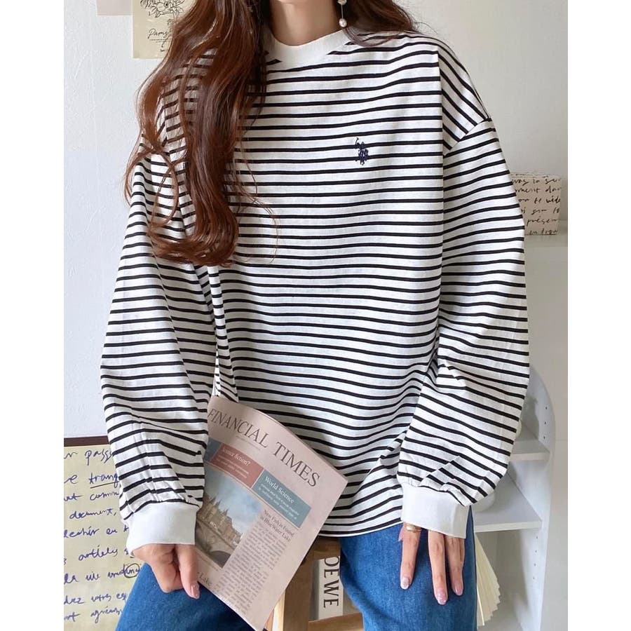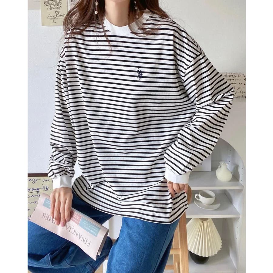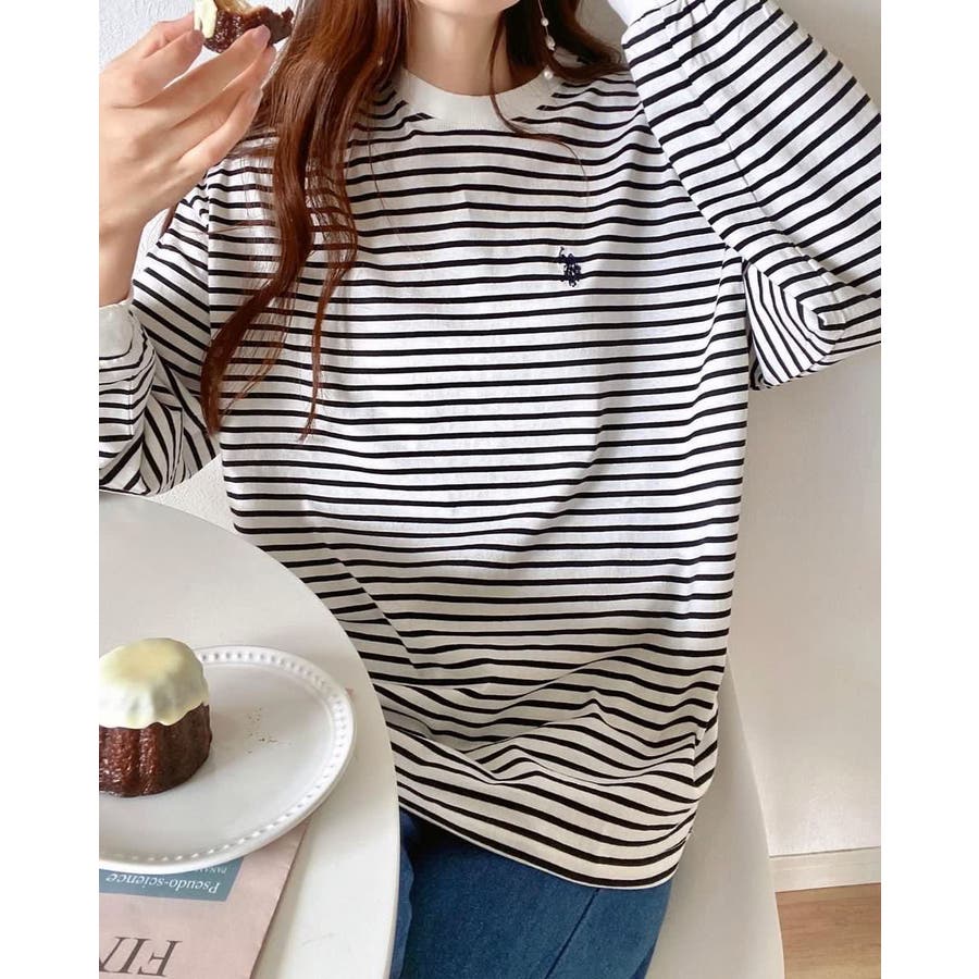 オーバーオールやジャンスカなどのインナーに合わせてスケーター、フルジョスタイリングもオススメ。ボーダー柄を取り入れた韓国ファッションといろんなスタイリングが楽しめるロンTです!