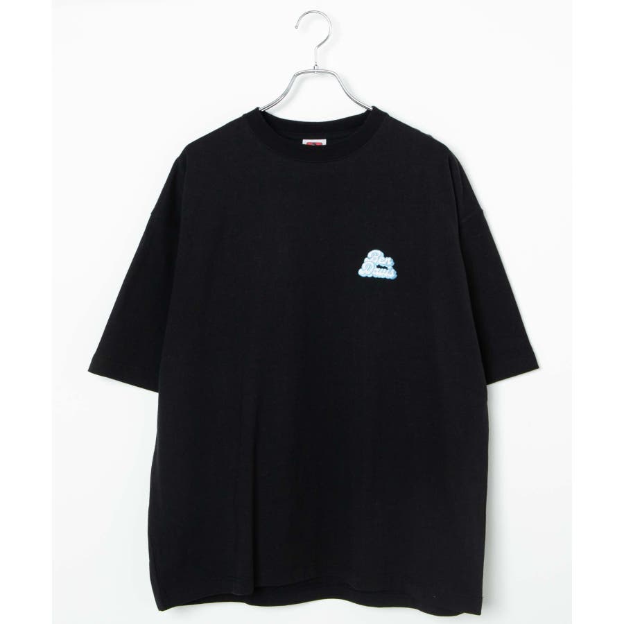 胸元のワンポイントとバックプリントにグラフィックデザインを入れた別注半袖Tシャツ。