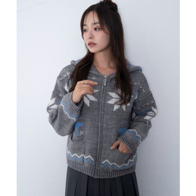 冬らしい雪柄をあしらった、シーズンムードたっぷりのジップカーディガン♪