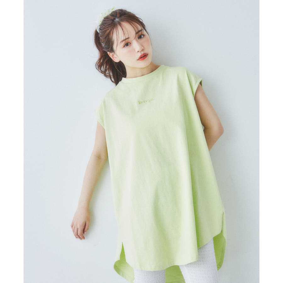 ワンポイントの刺繍がかわいいオーバーサイズタンク。